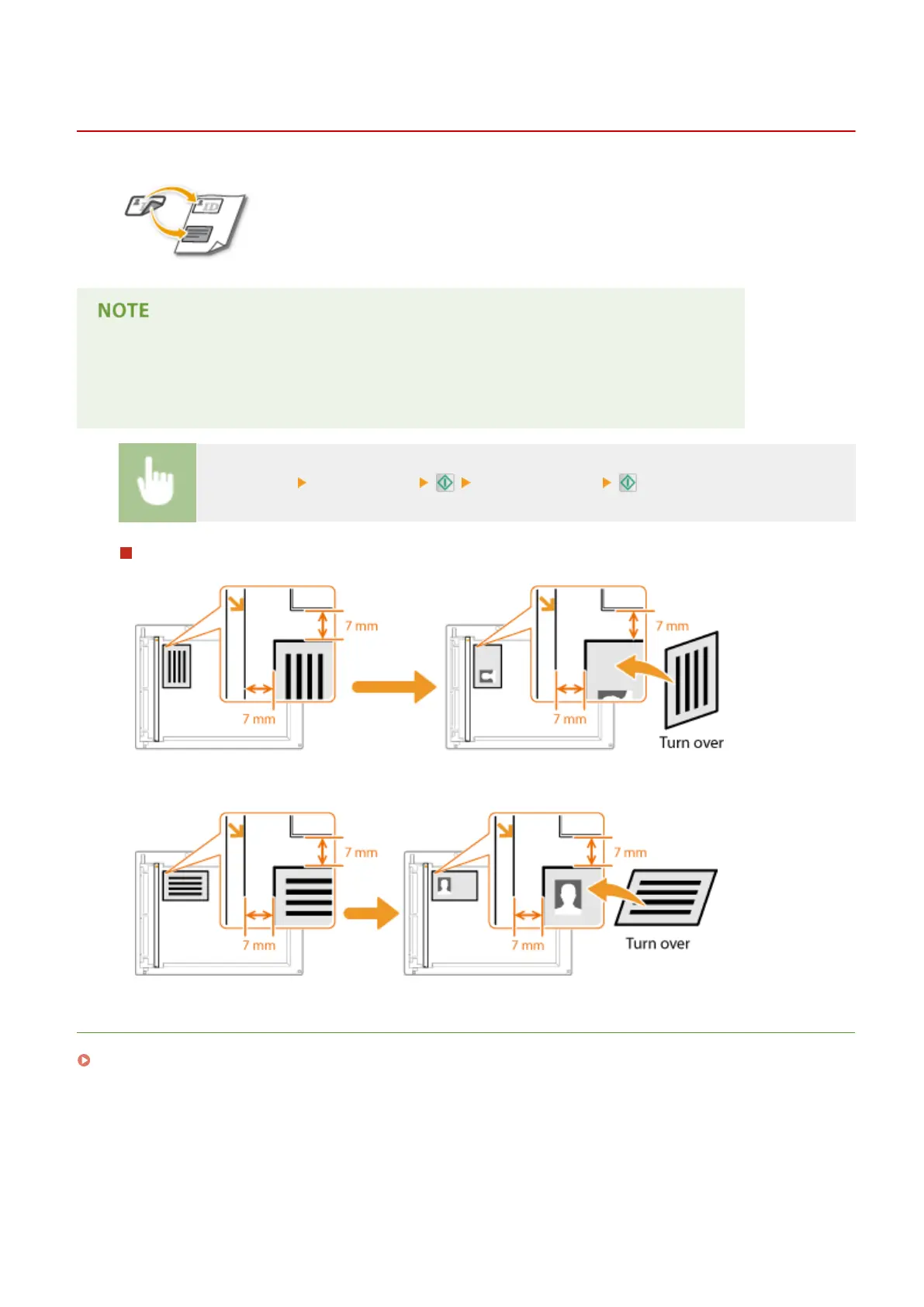 You can use <ID Card Copy> to copy the front and back sides of a card onto the same