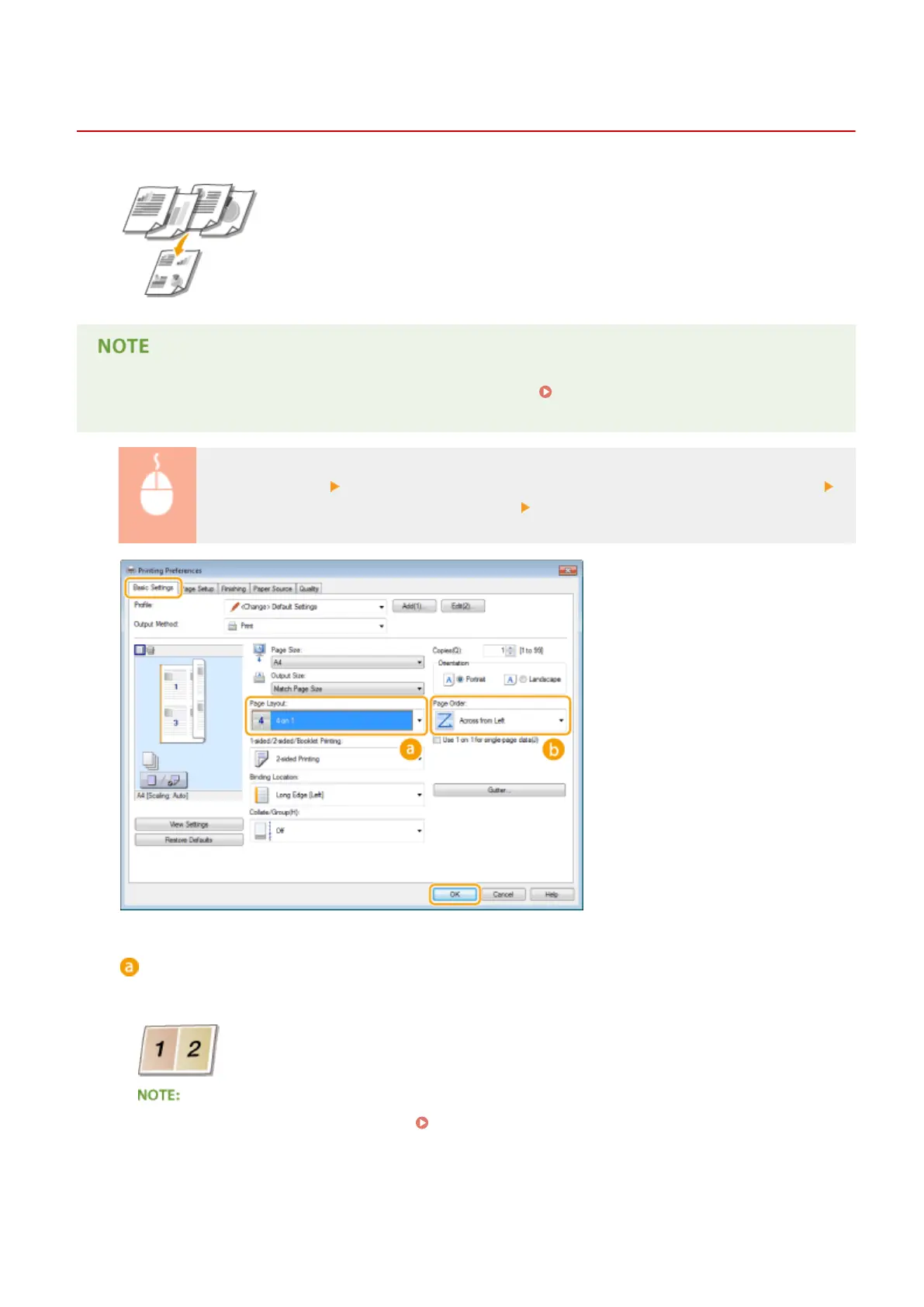[Basic Settings] tab In [Page Layout], select the number of pages to print onto a single sheet In
