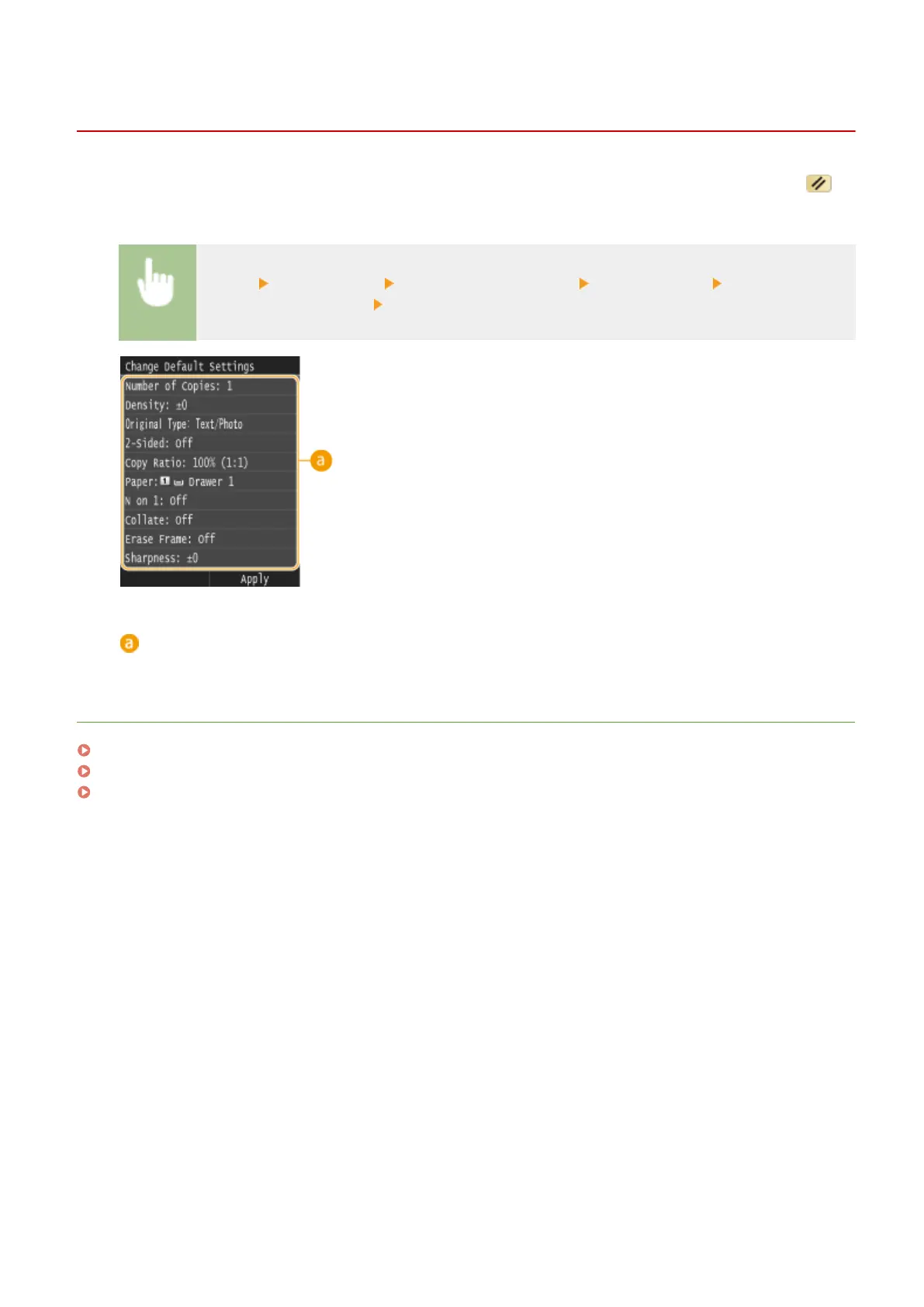<Menu> <Copy Settings> <Change Default Settings> Select the setting Change the default