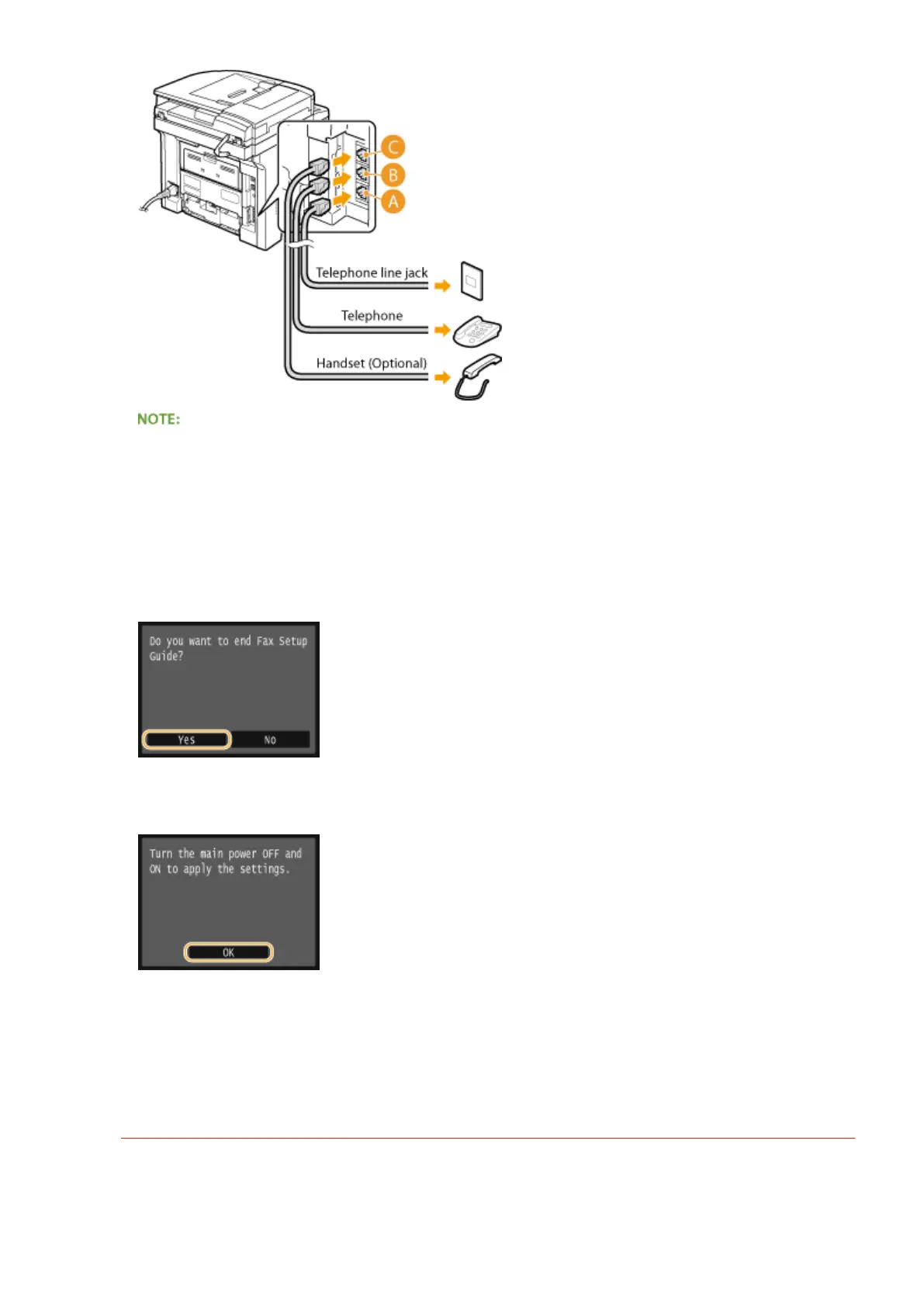 ● If you are connecting an external telephone with fax functions, set up the telephone to receive faxes