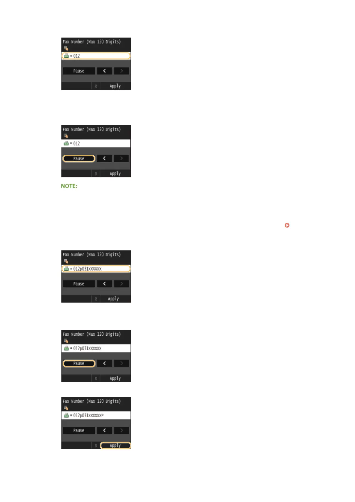 Inputting pauses is optional; however, consecutive numbers that are input without pauses may not be