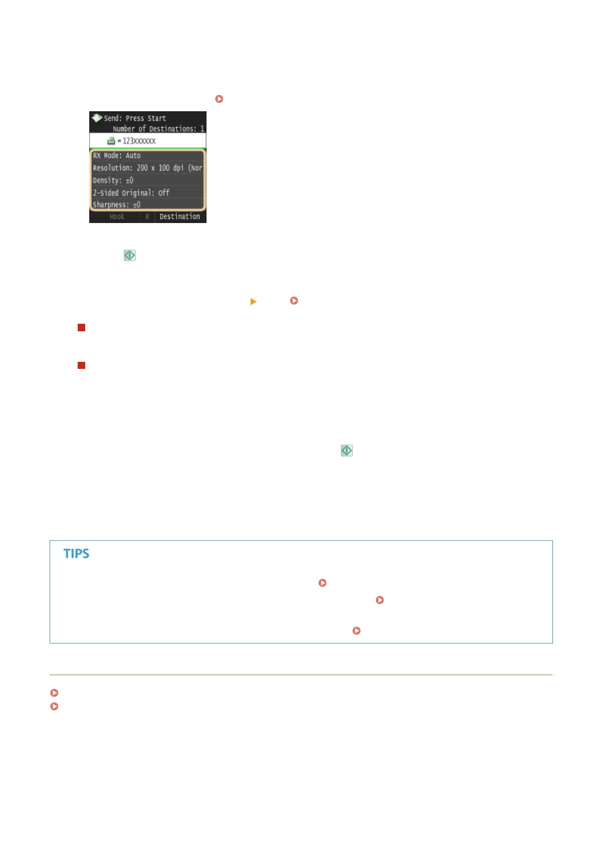 ● If you always want to send faxes with the same settings: Changing Default Settings(P. 173)