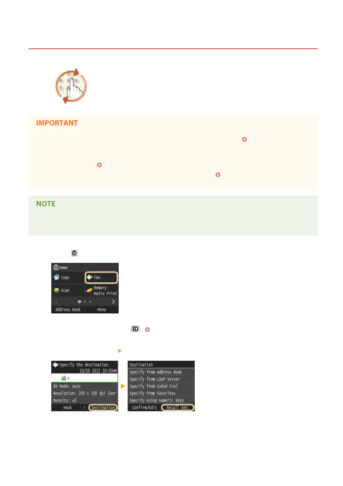 ● Turning OFF the machine or setting <Restrict New Destinations> to <On> deletes the past destinations, and