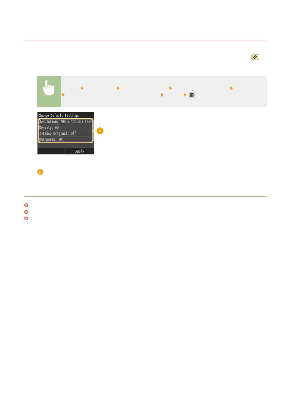 <Menu> <Fax Settings> <TX Function Settings> <Change Default Settings> Tap the setting