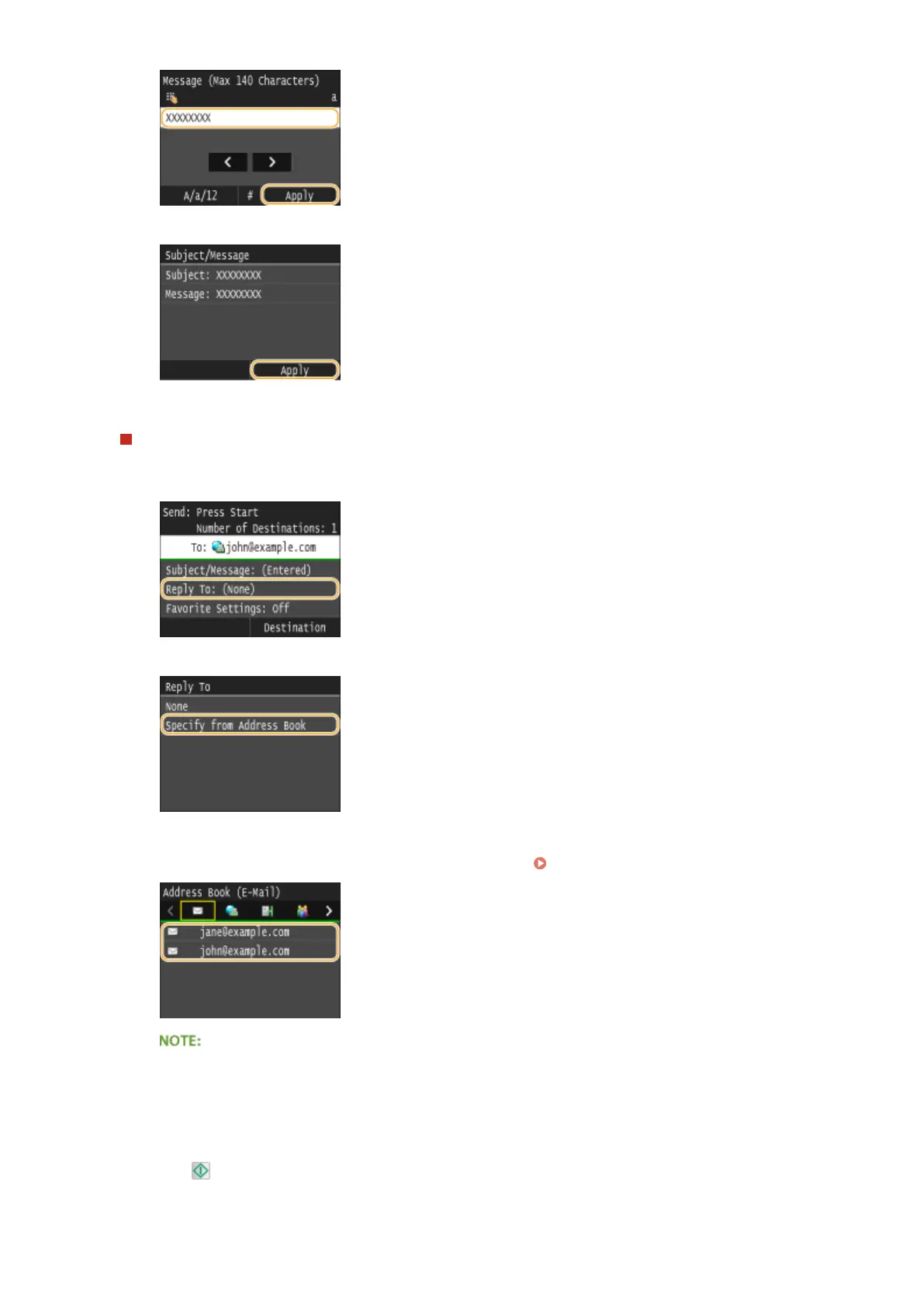 ● For instructions on how to use the Address Book, see Specifying from Address Book(P. 154) .