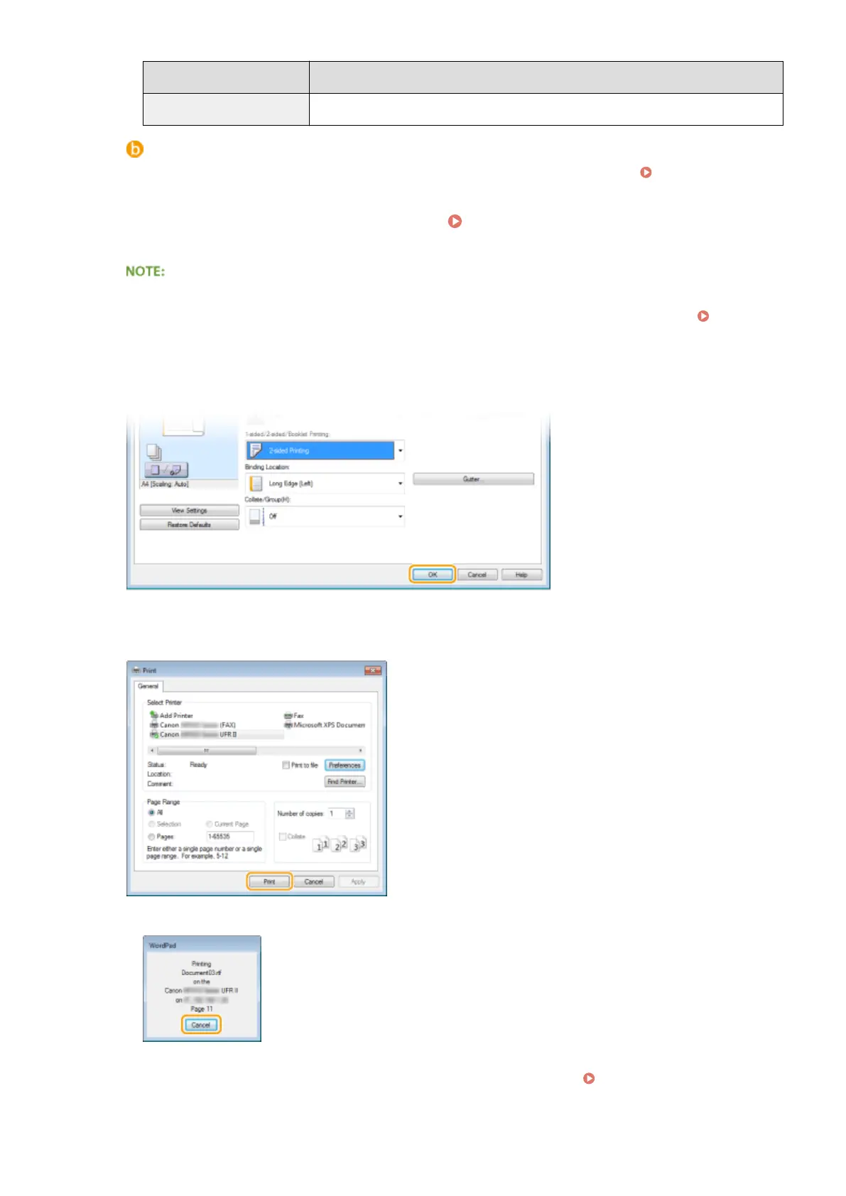 ● To cancel printing, click [Cancel] when the screen shown above is displayed. After the screen disappears