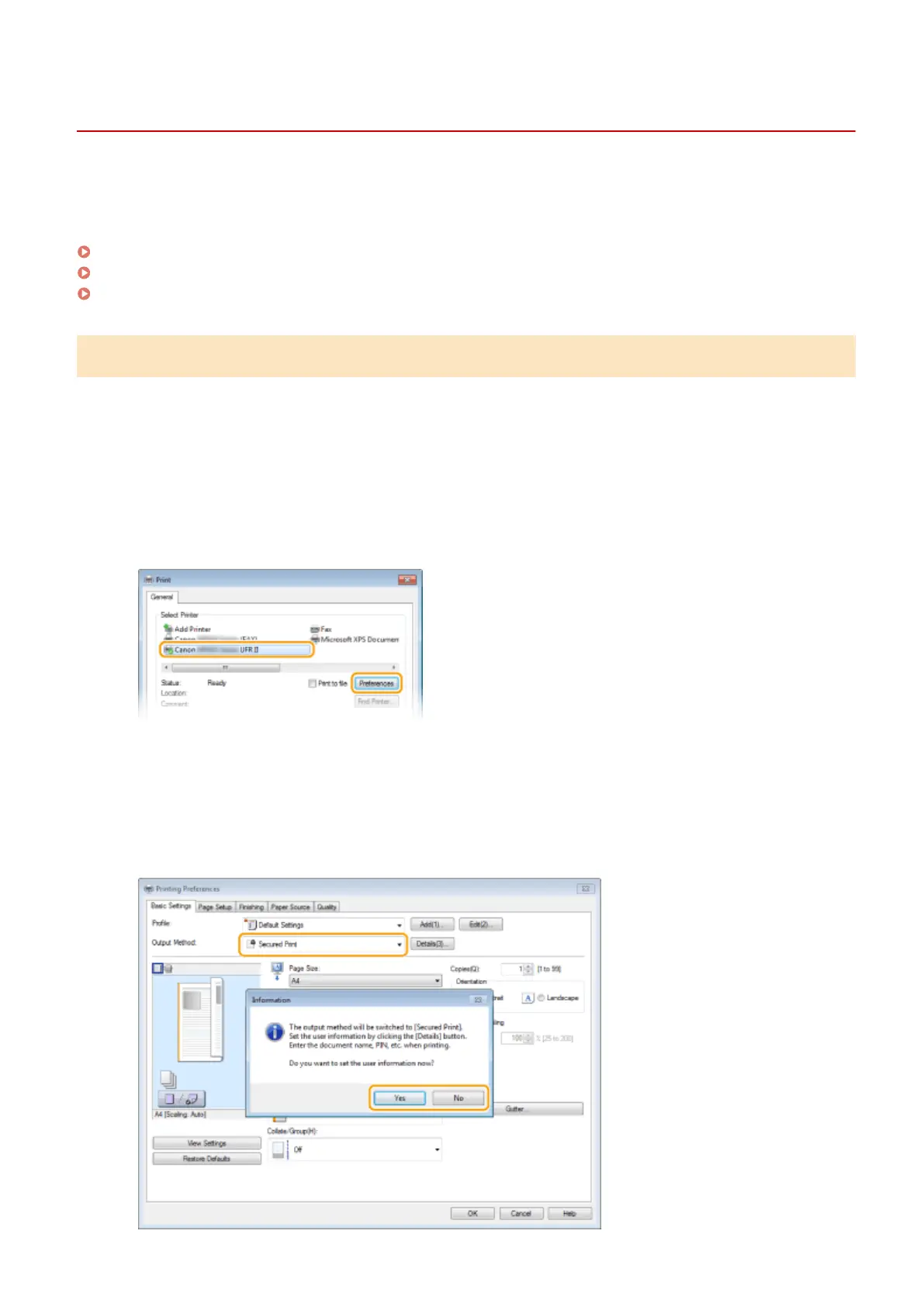 This section describes how to print a document from an application as a secured document. The rst part of this