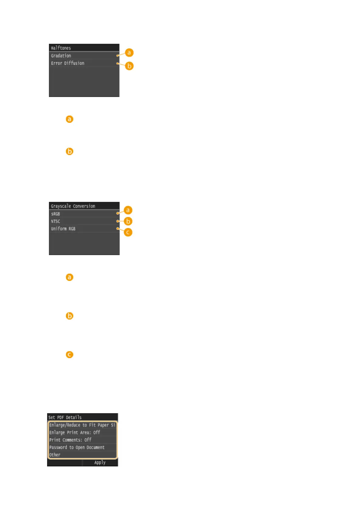 darker areas of an image) for optimal image quality. Tap <Gradation> or <Error Diffusion>.