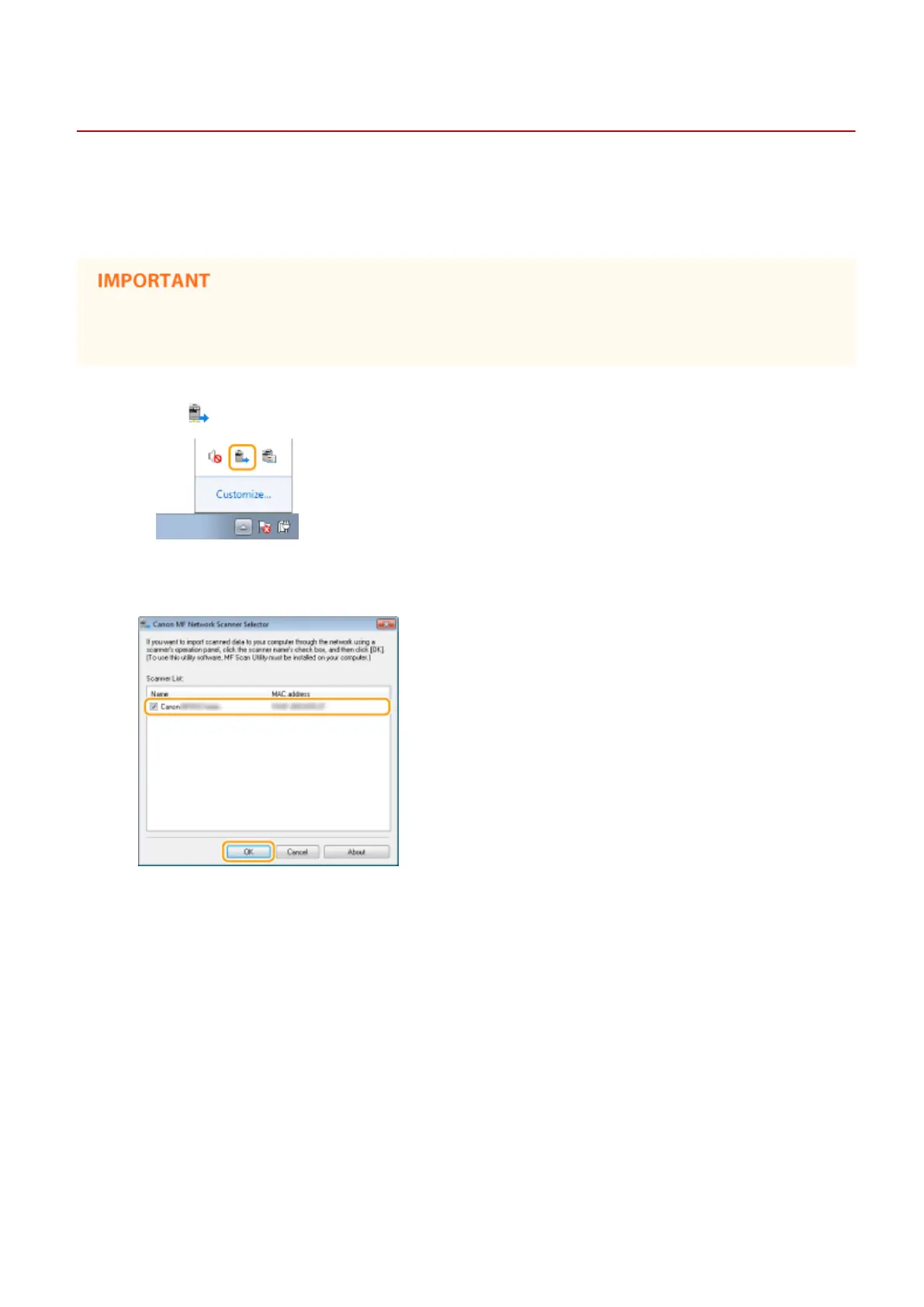 wireless or wired LAN, you must register the machine in "MF Network Scanner Selector" by following the procedure