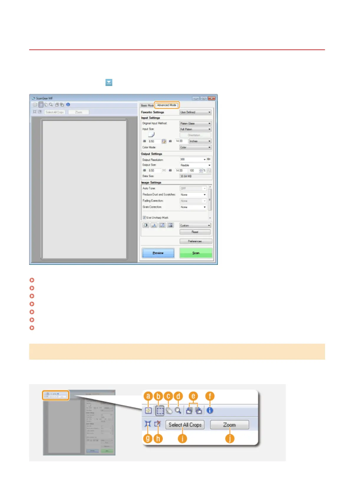 If you click the [Advanced Mode] tab on the ScanGear MF screen, you can make more advanced adjustments in the