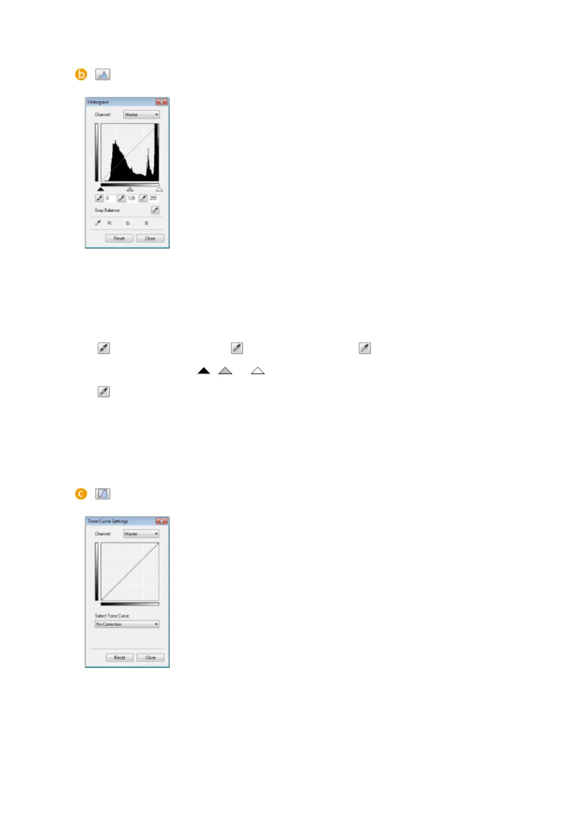 (Black-point Eyedropper) / (Mid-point Eyedropper) / (White-point Eyedropper)