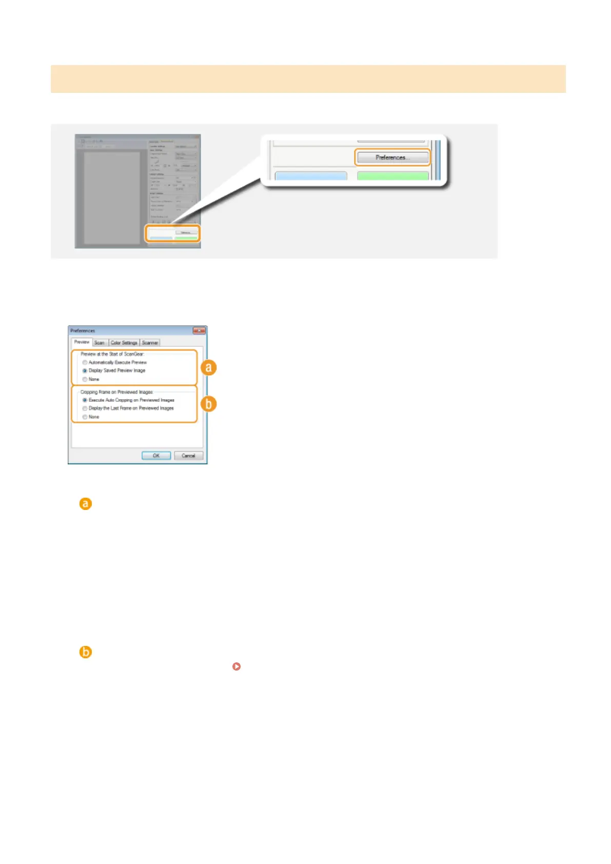 Click [Preferences] to congure various settings, including the operation when scanning.