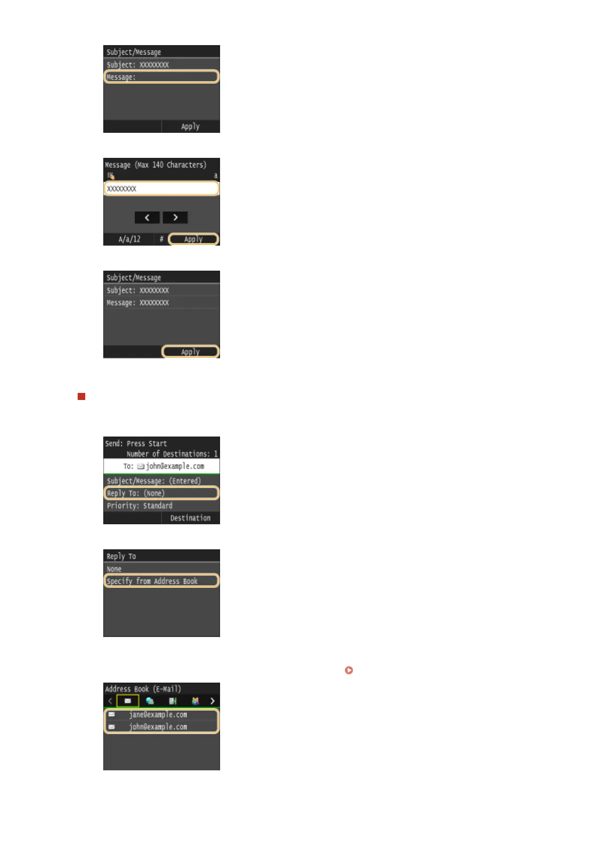 ● For instructions on how to use the Address Book, see Specifying from Address Book (P. 362) .