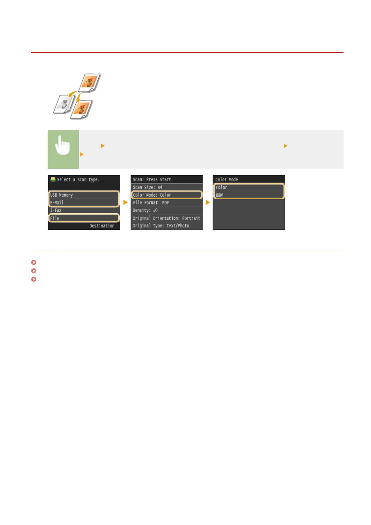 <Scan> Select <USB Memory> or specify a destination with <E-Mail>/<File> <Color Mode>