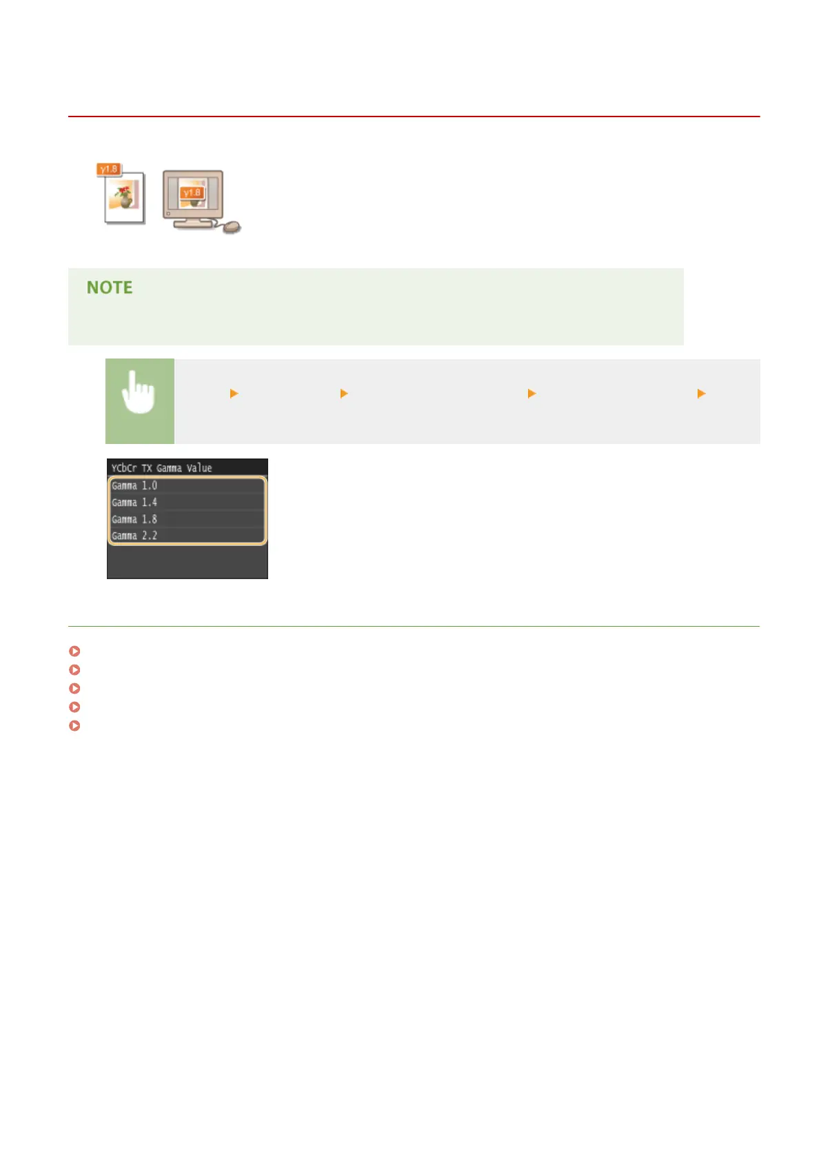 <Menu> <Scan Settings> <Output File Image Settings> <YCbCr TX Gamma Value> Select