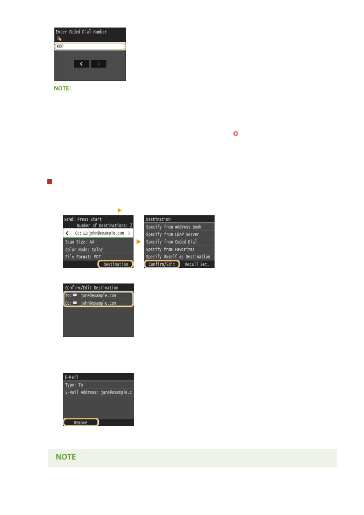 ● When <Coded Dial TX Conrmation> is set to <On>, a screen is displayed that shows the destination and