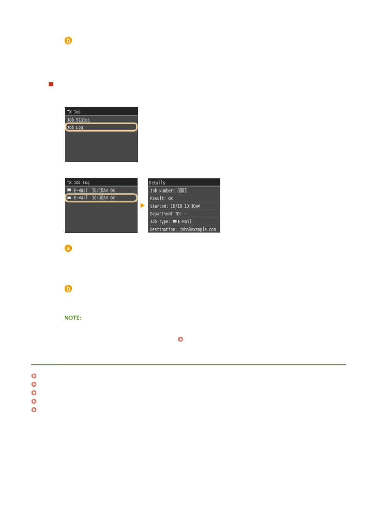 Displays a list of the documents that were sent. <OK> is displayed when a document was sent