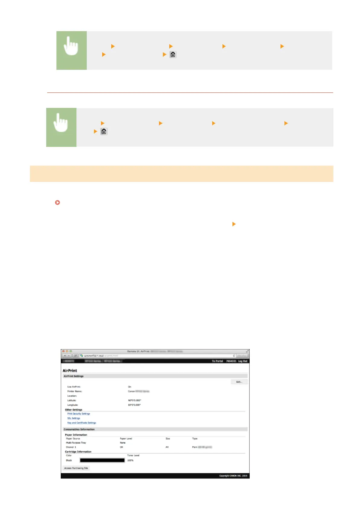 ● To change AirPrint settings, log on in System Manager Mode.