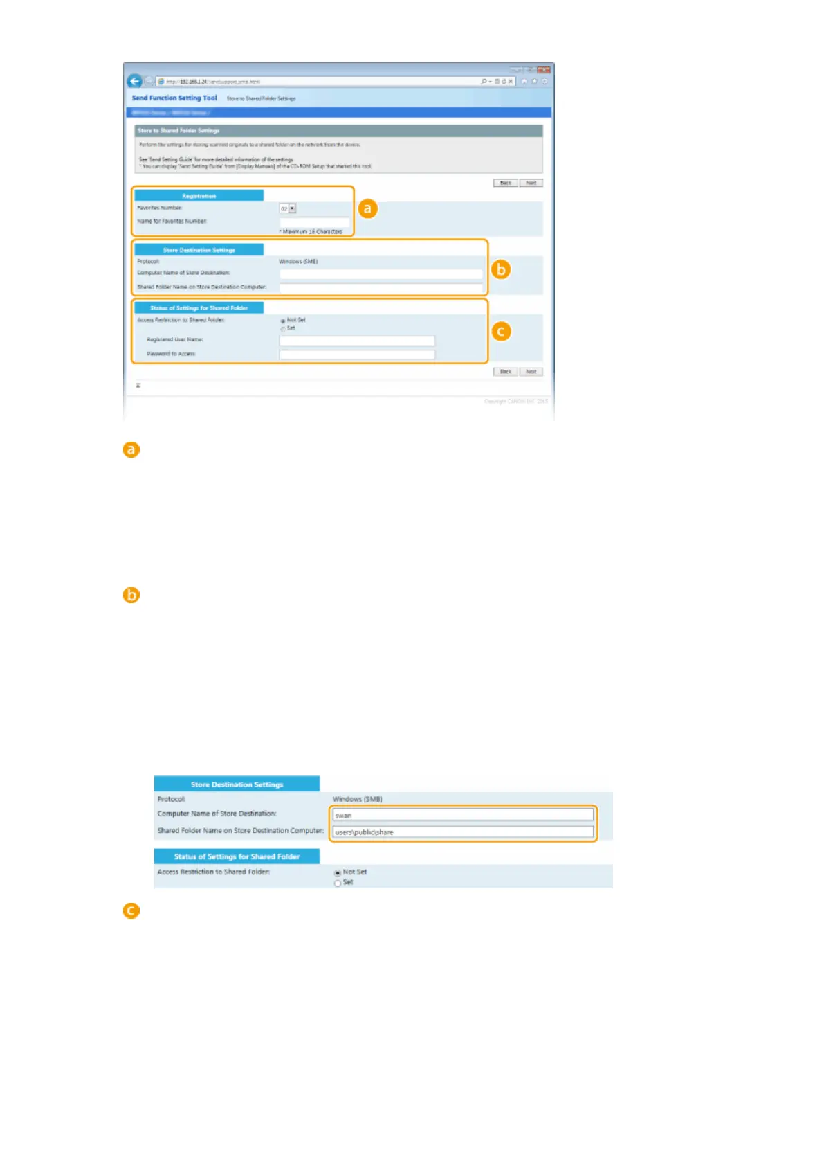 With the Send Function Setting Tool, you can register a shared folder for saving scanned documents