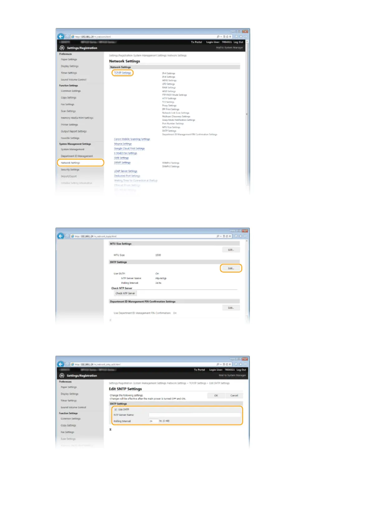 Click [Edit] in [SNTP Settings].