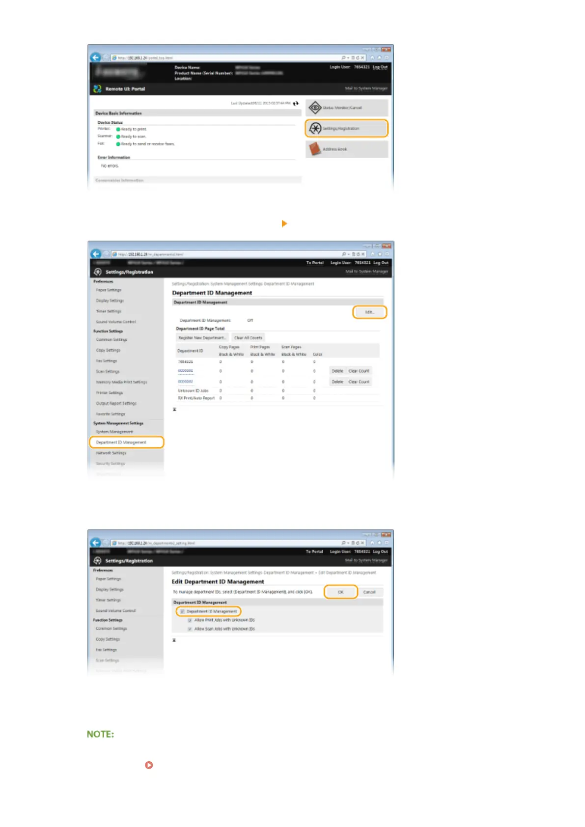 ● For information on the [Allow Print Jobs with Unknown IDs]/[Allow Scan Jobs with Unknown IDs] check