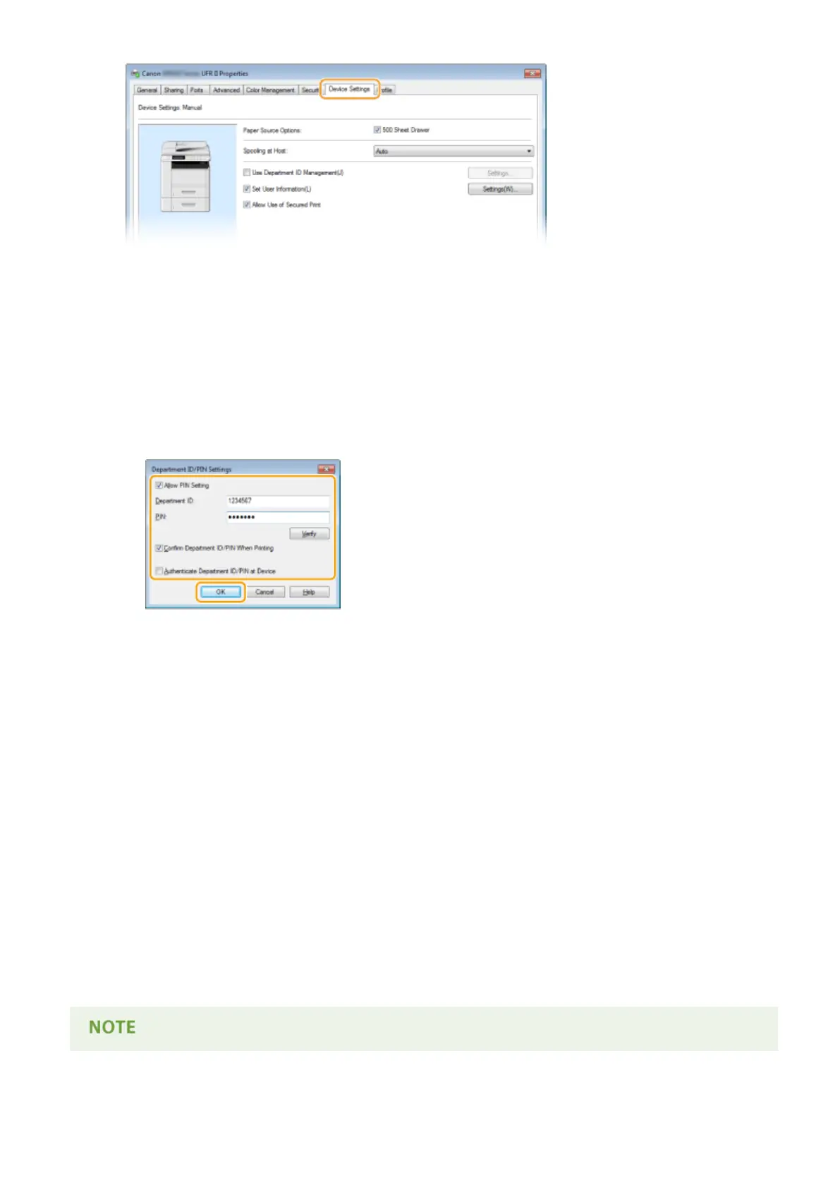 Select the check box to display the [Conrm Department ID/PIN] pop-up screen each time you print or fax