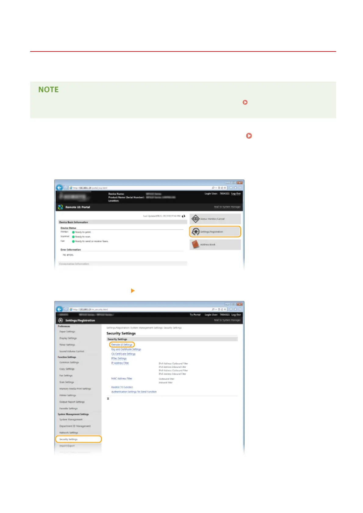 Tap [Security Settings] [Remote UI Settings].