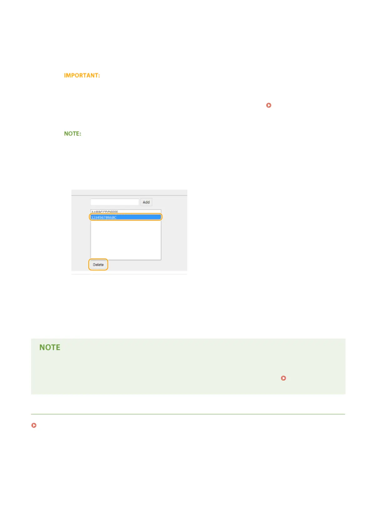 ● If MAC addresses are incorrectly entered, you may become unable to access the machine from the