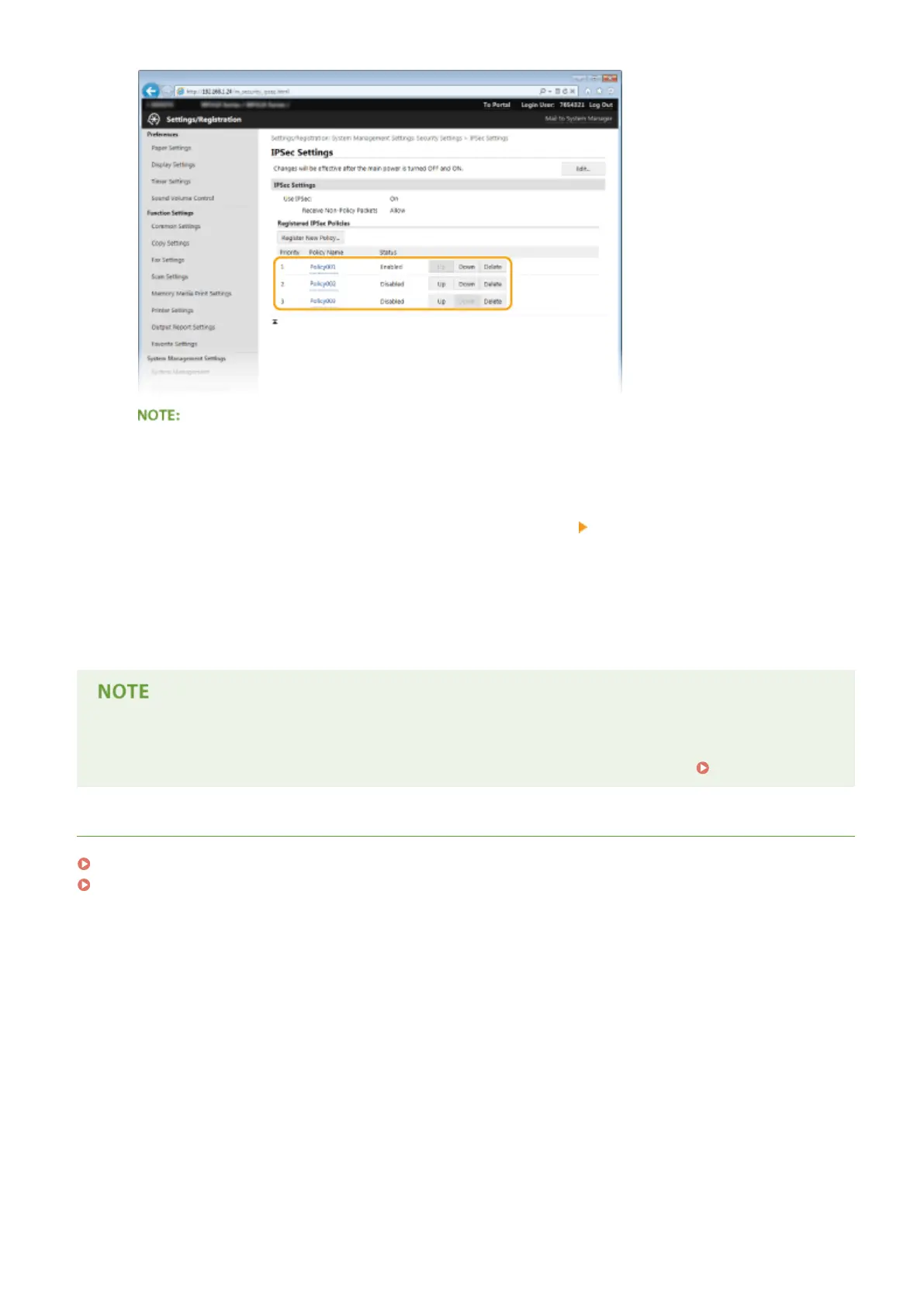 ● You can also enable or disable IPSec communication from <Menu> in the Home screen.