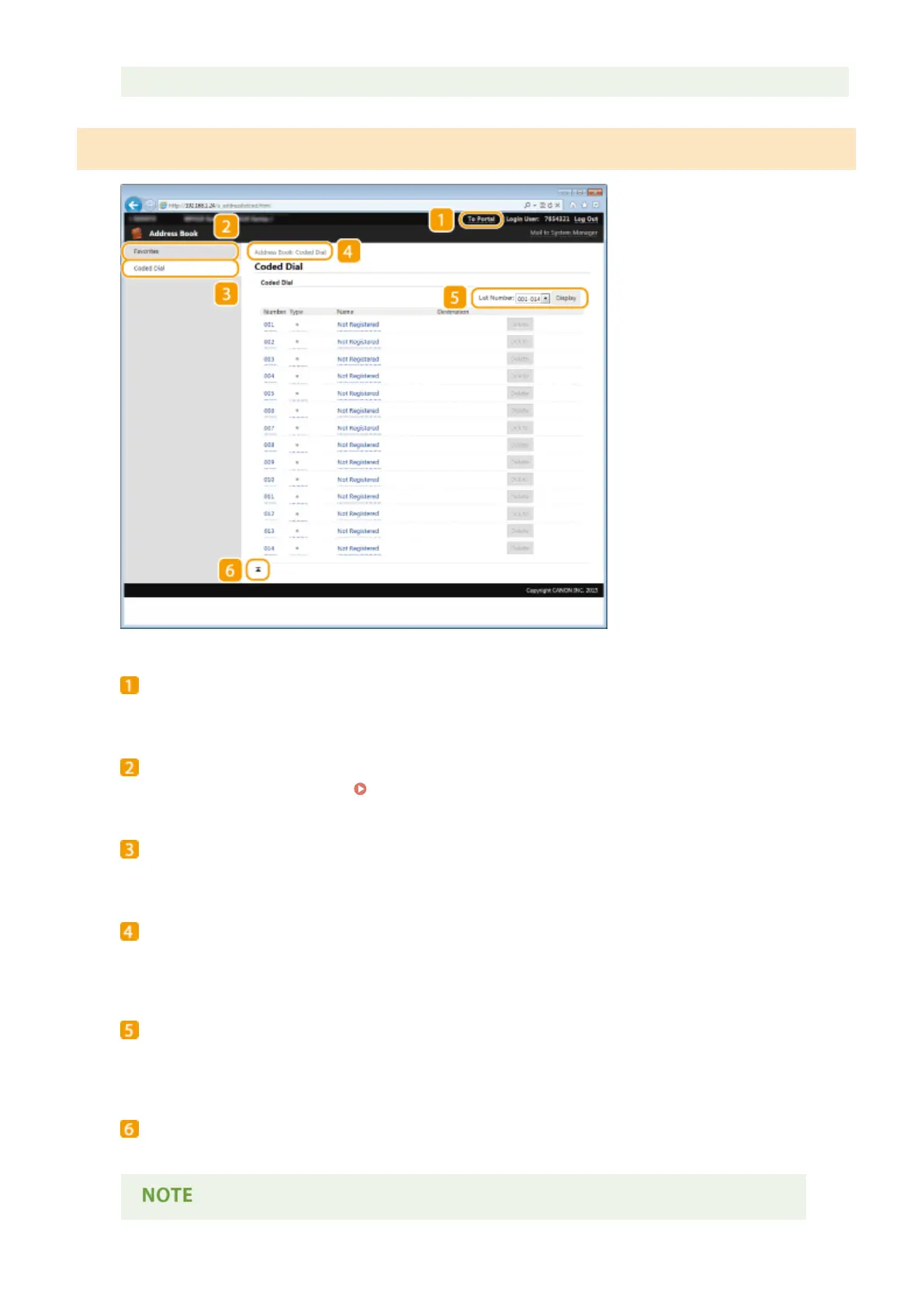 Displays the list of the coded dial numbers.