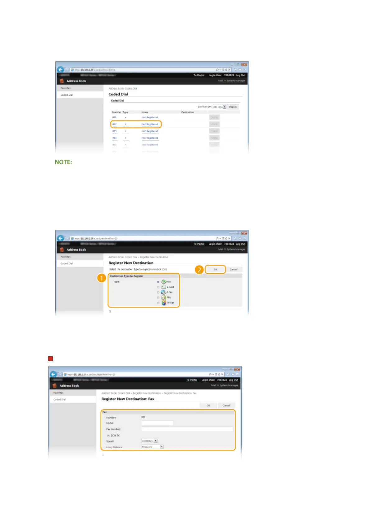 ● You can delete a registered destination by clicking the corresponding [Delete] button.