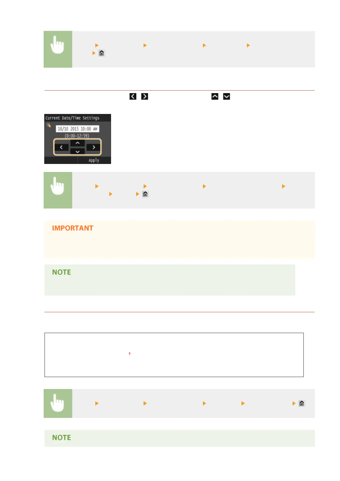 ● Set <Time Zone> before setting the current date and time. If the <Time Zone> setting is changed, the