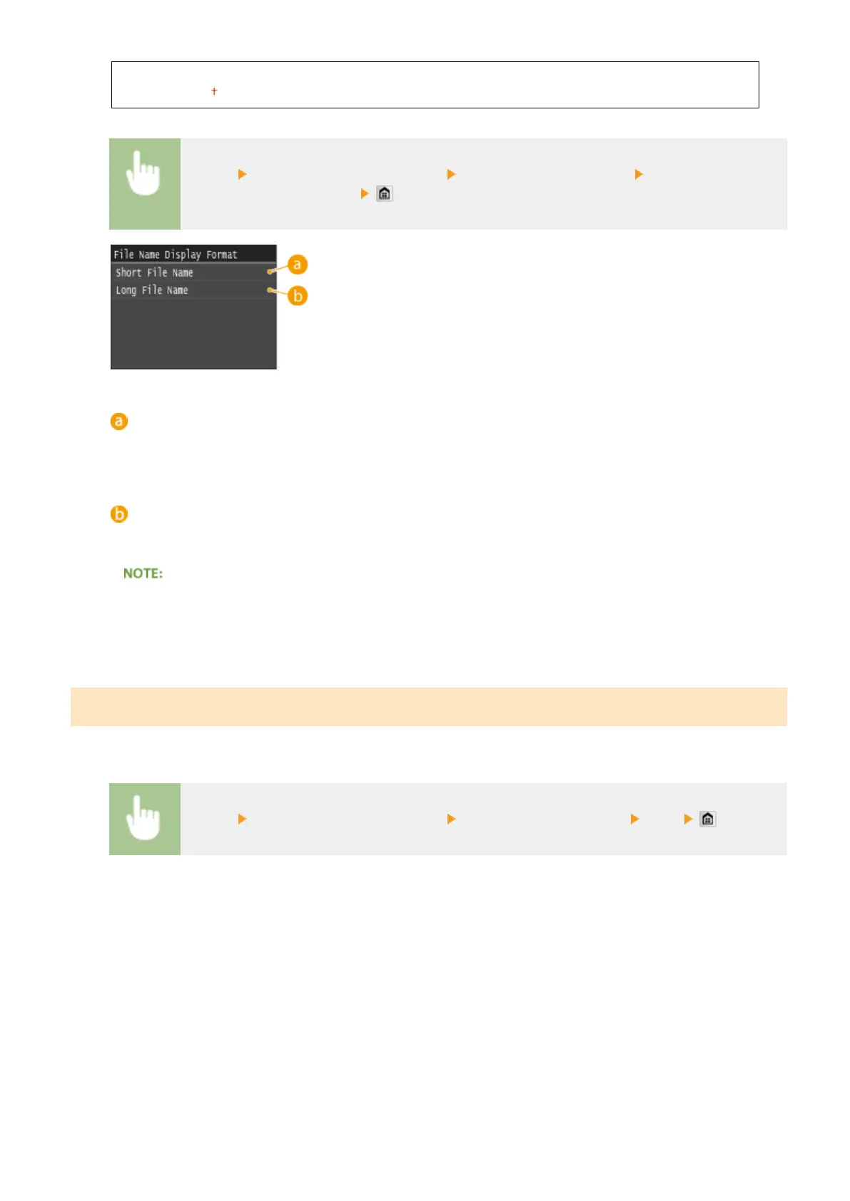 <Menu> <Memory Media Print Settings> <File Name Display Format> Select <Short File
