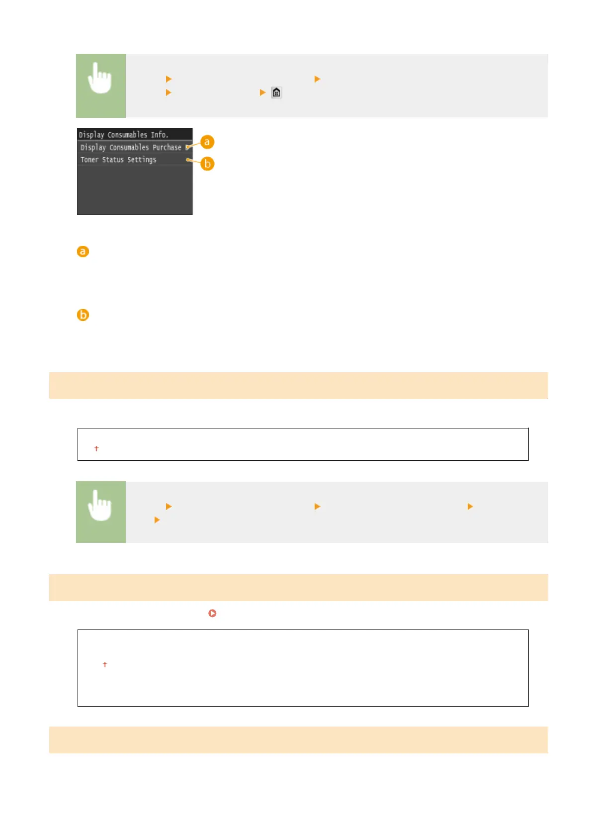 If you do not want to use Toner Status, select <Off>. To prevent a button that accesses sites for purchasing