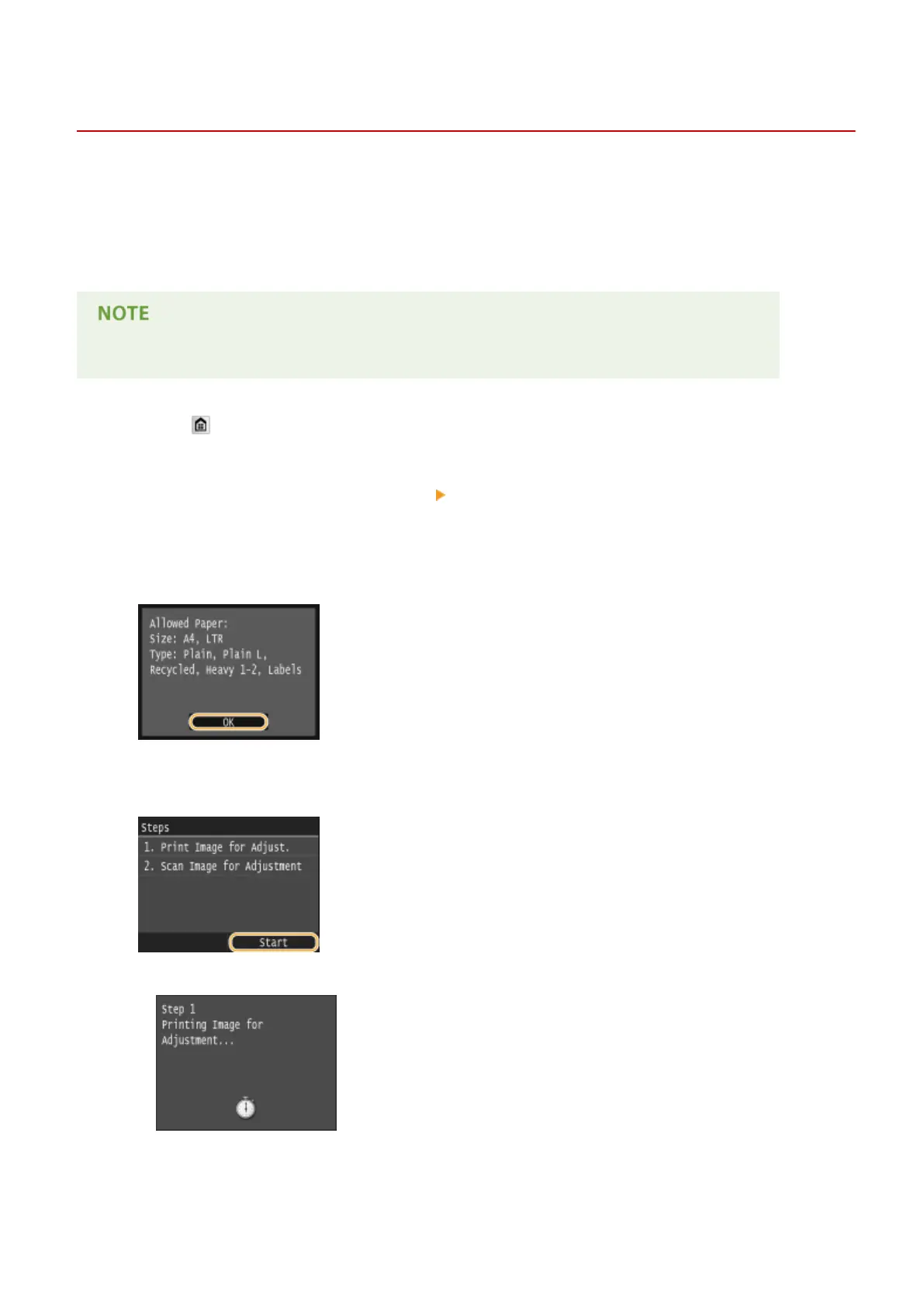 ● Adjustments may not be performed effectively if there is not sucient toner cartridge remaining.