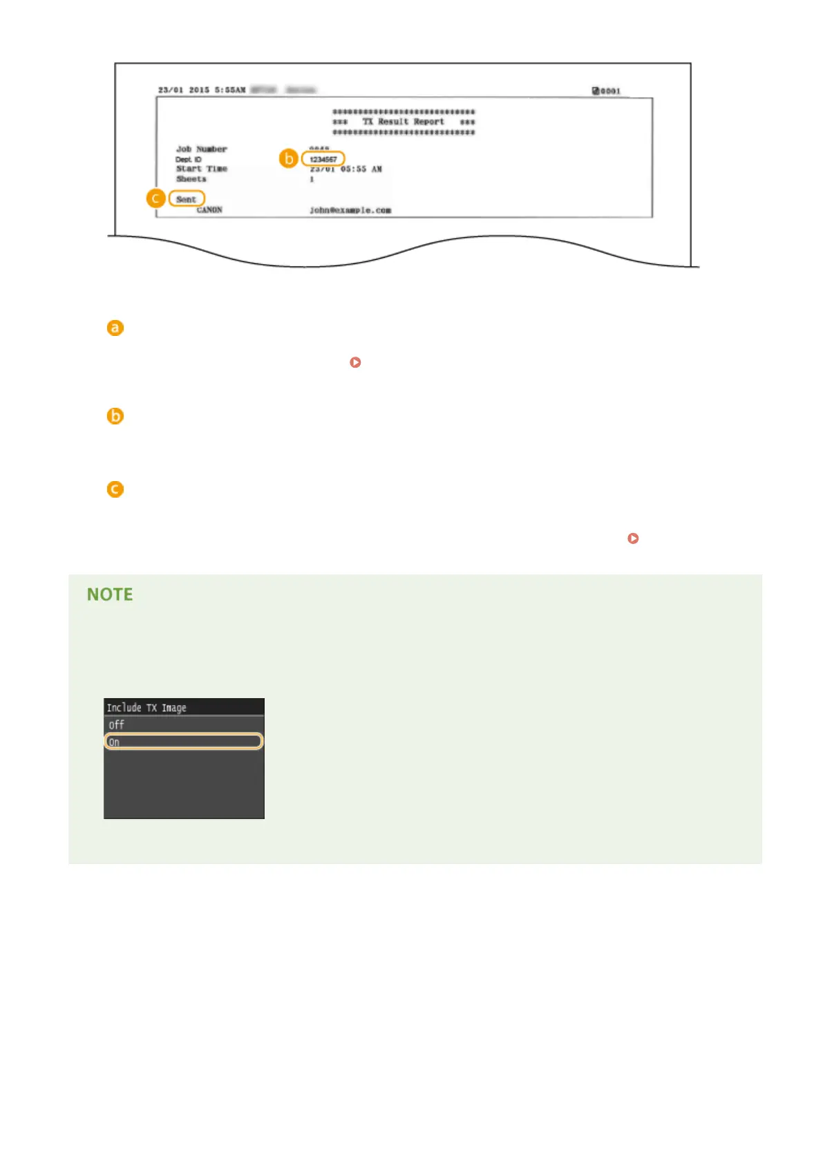For e-mail, TX Result Reports indicate the transmission result between the machine and the mail server, not