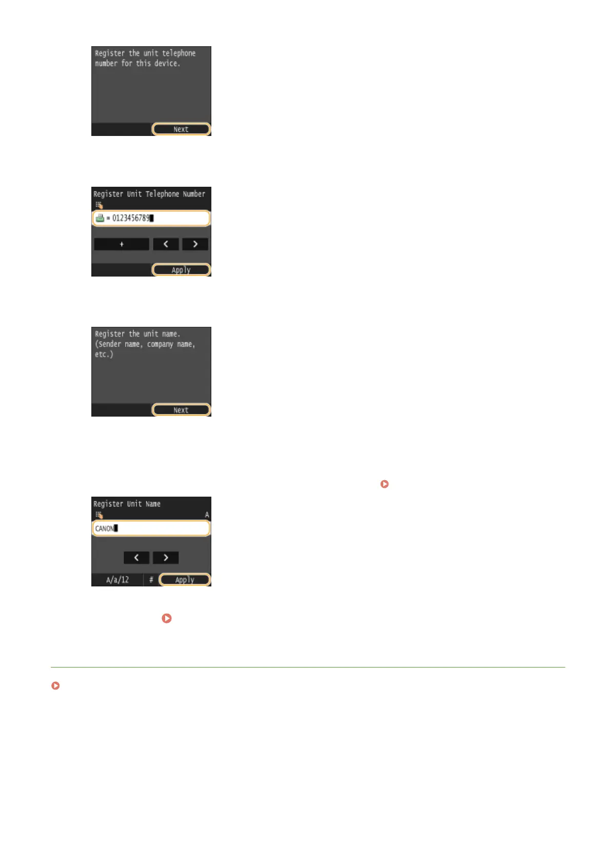 Enter the unit name (such as a user name or company name) using the numeric keys,