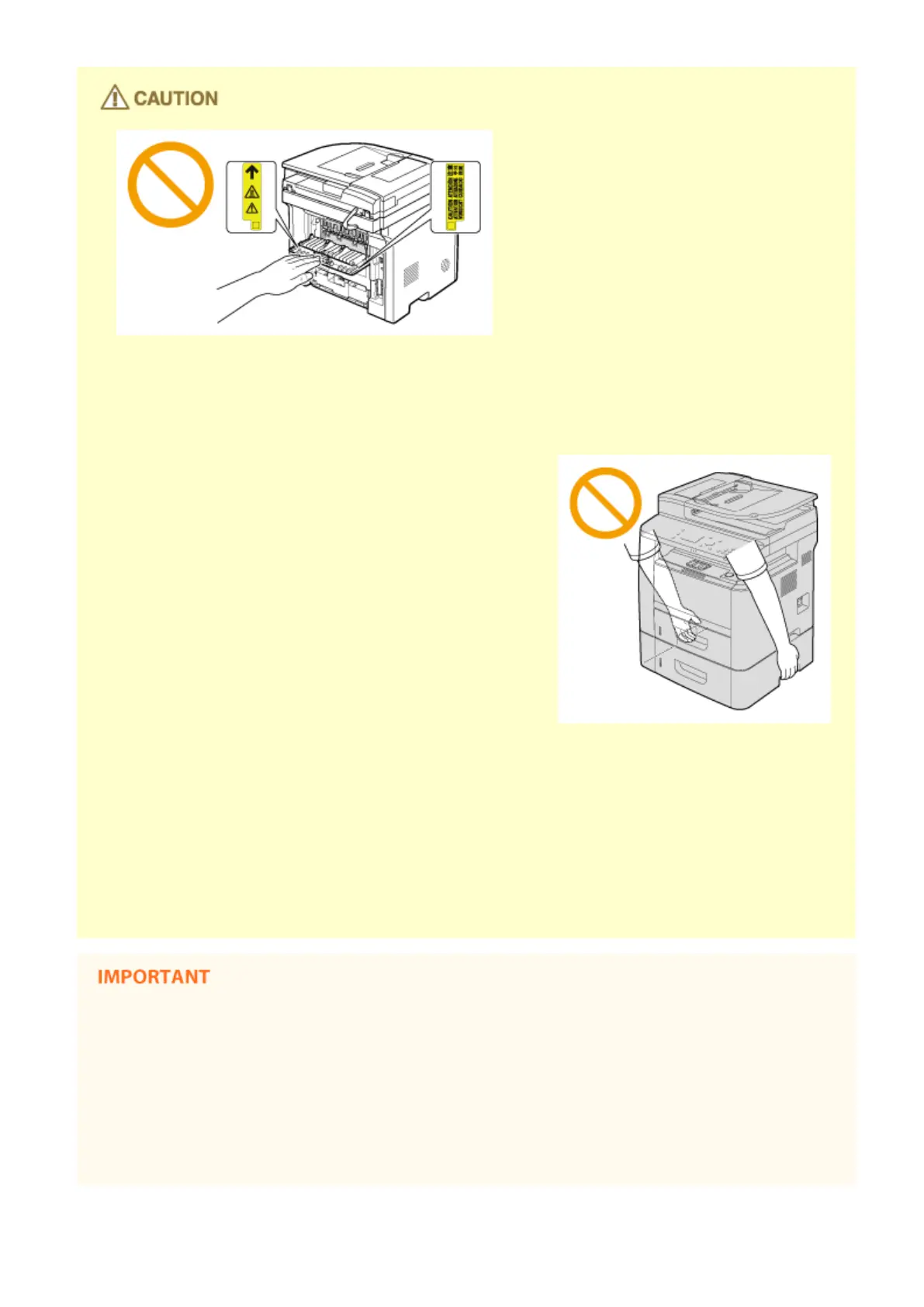● Do not carry the machine with the paper drawers or the