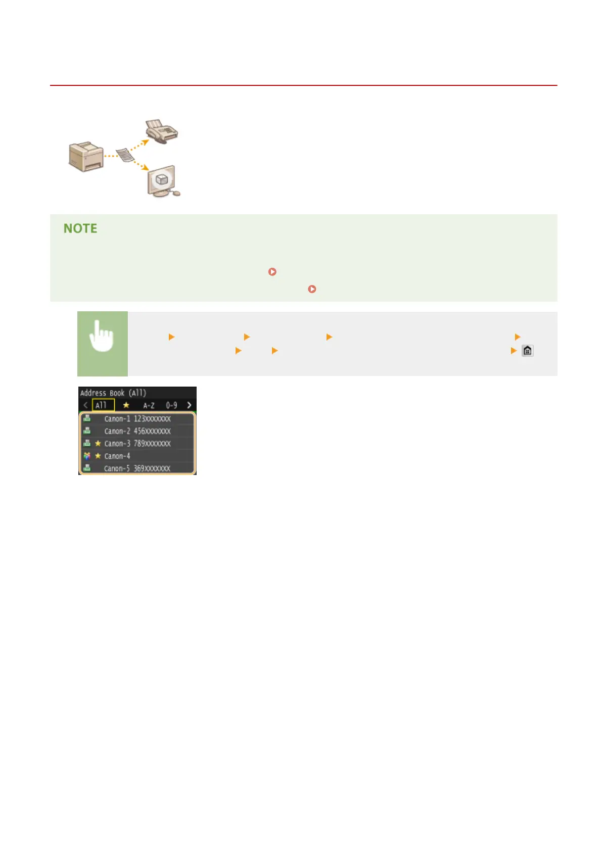 destination must be registered beforehand. Registering in the Address Book(P. 78)