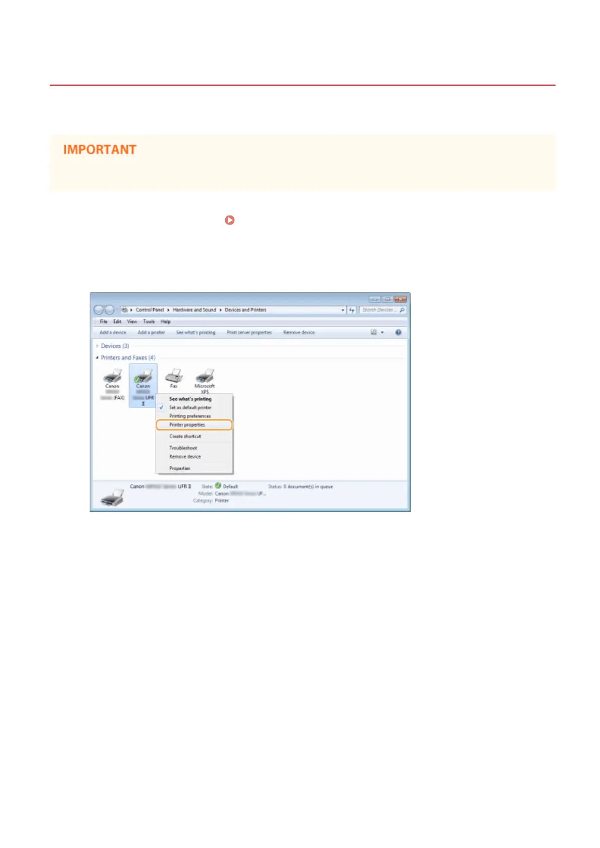 Open the printer folder. Displaying the Printer Folder(P. 892)