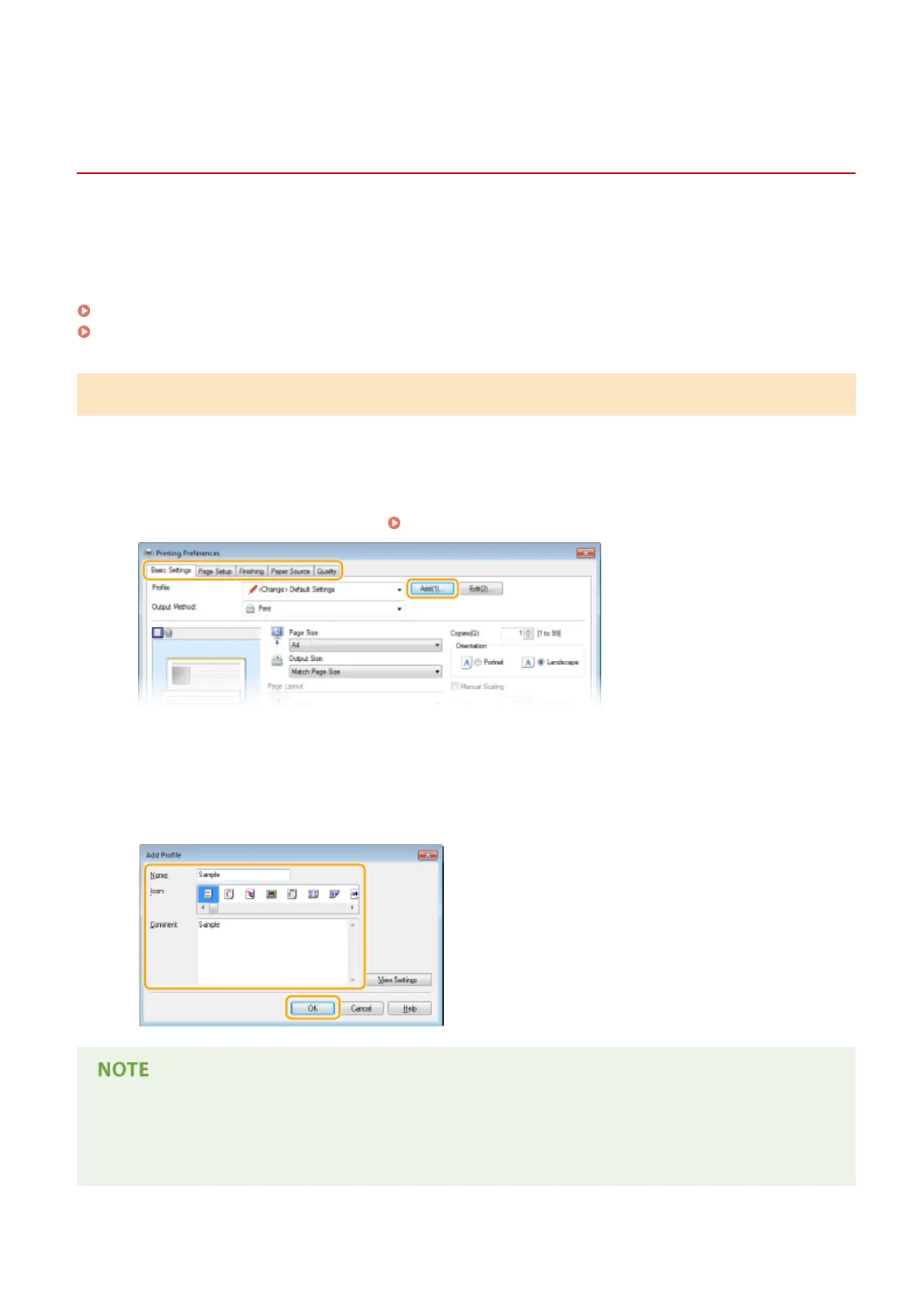 printing settings simply by selecting one of these proles from the list. This section describes how to register proles