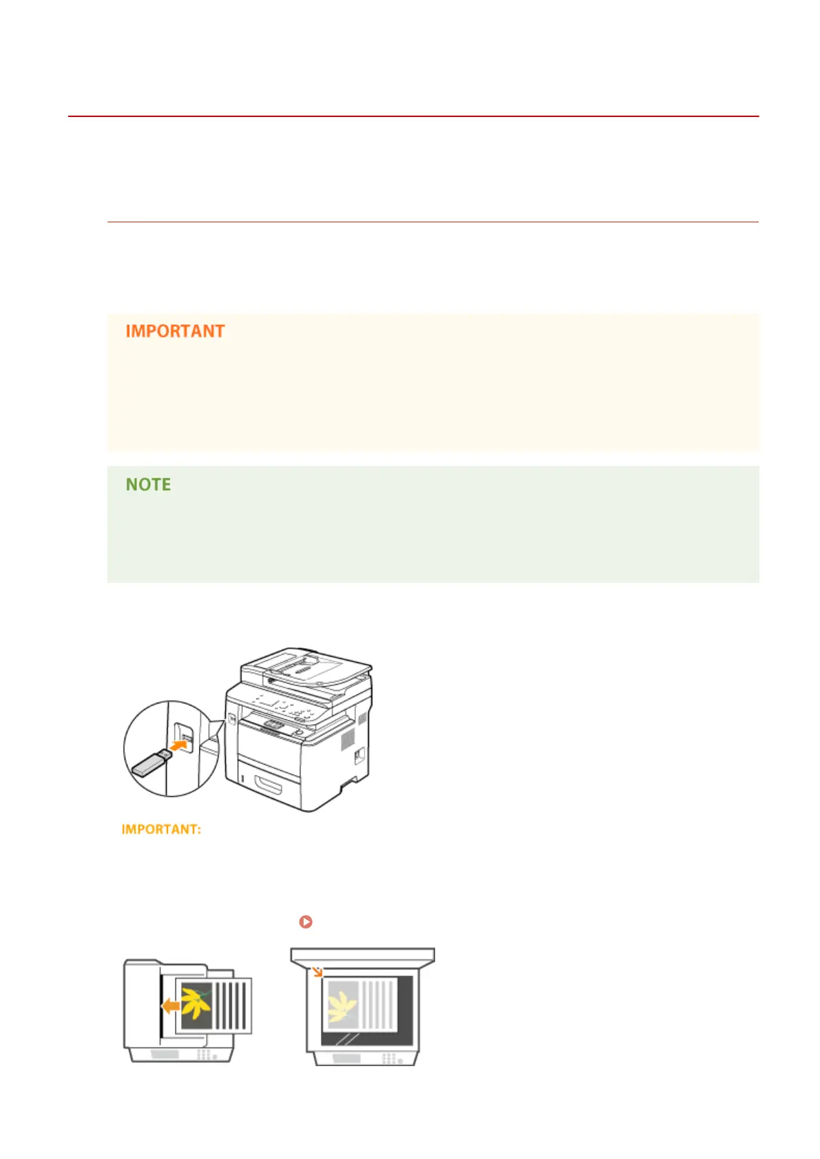 ● If a folder in a USB memory device has many les, saving scanned data will take more time. Use your