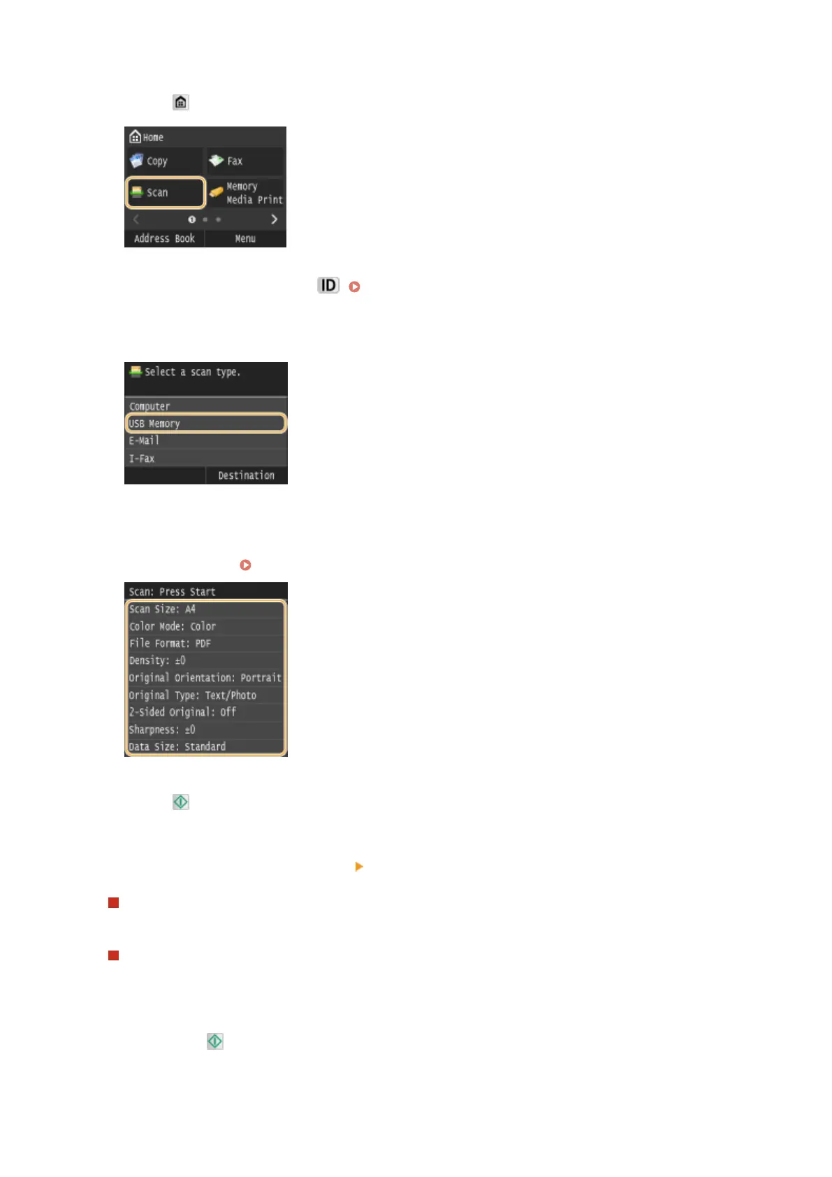When scanning is complete, the scanned data is saved in the USB memory device.