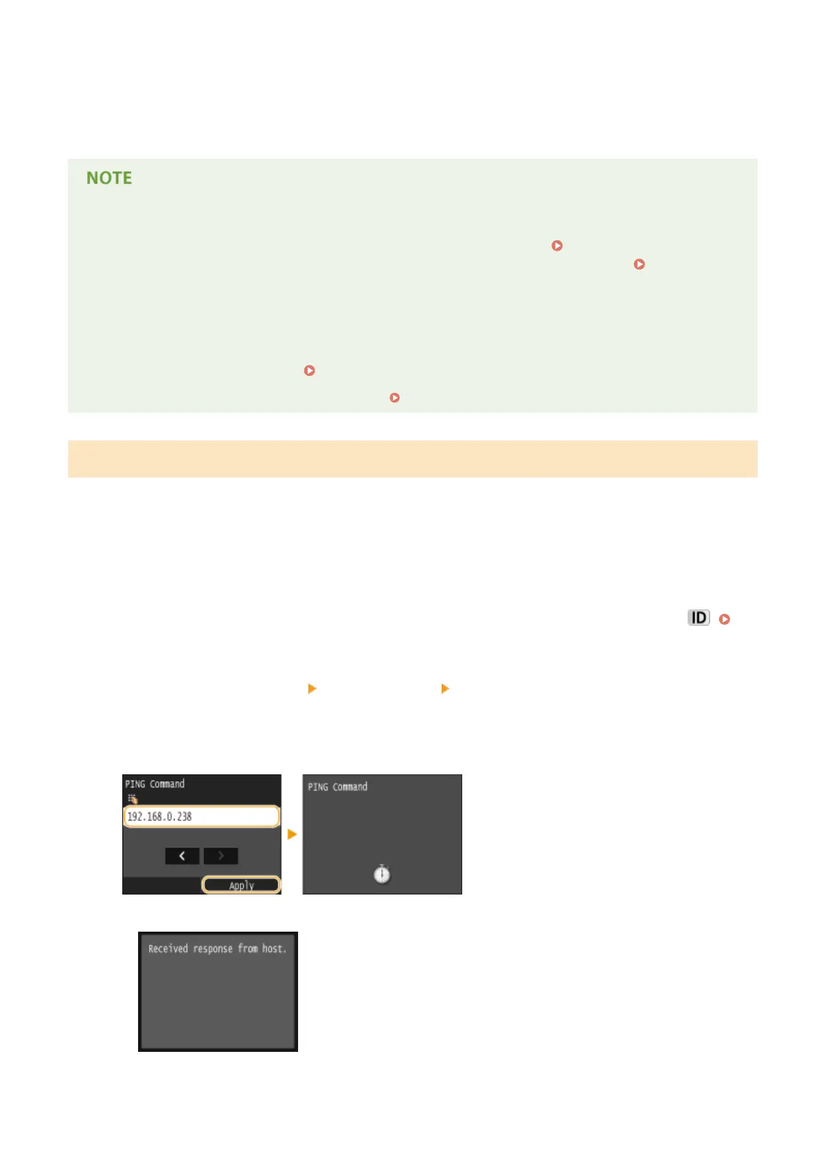 Select <TCP/IP Settings> <IPv4 Settings> <PING Command>.