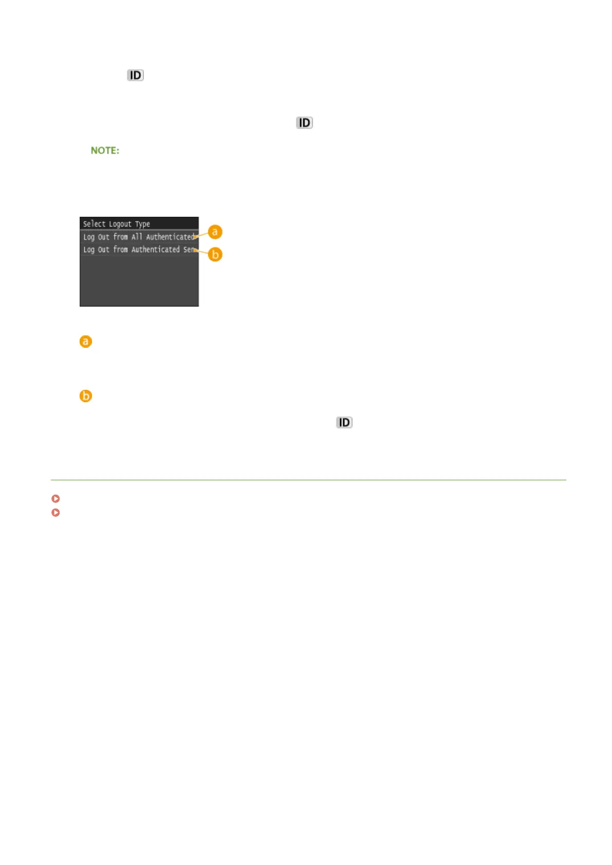 Select to log out of Authorized Send (fax or scan function) and Department ID Management simultaneously.