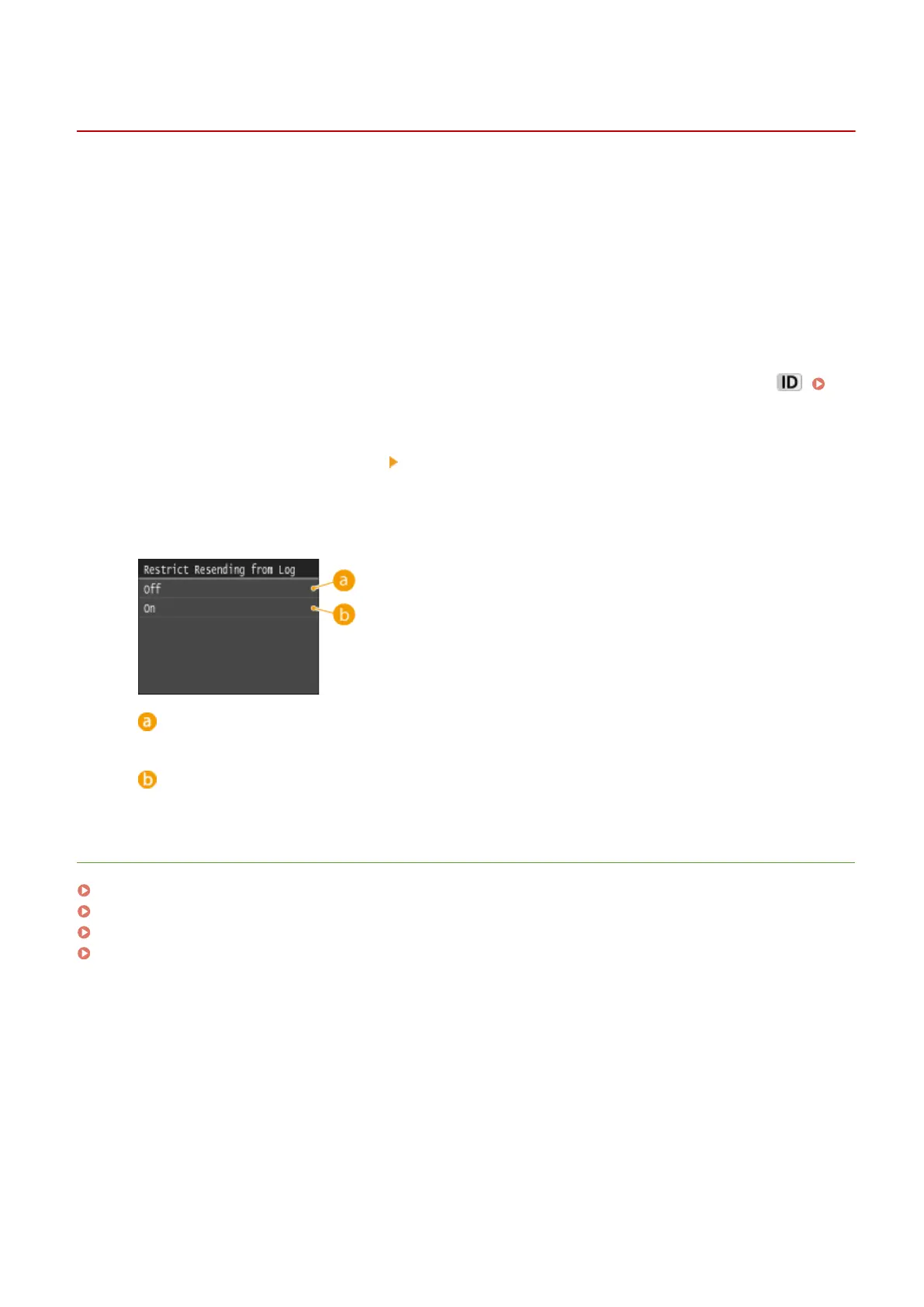 Select <Restrict TX Function> <Restrict Resending from Log>.