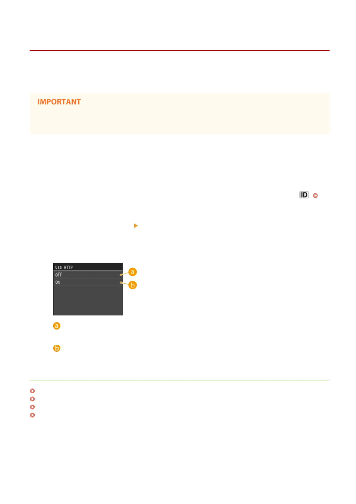 Disabling HTTP disables some of the network capabilities, such as the Remote UI, WSD printing, and printing