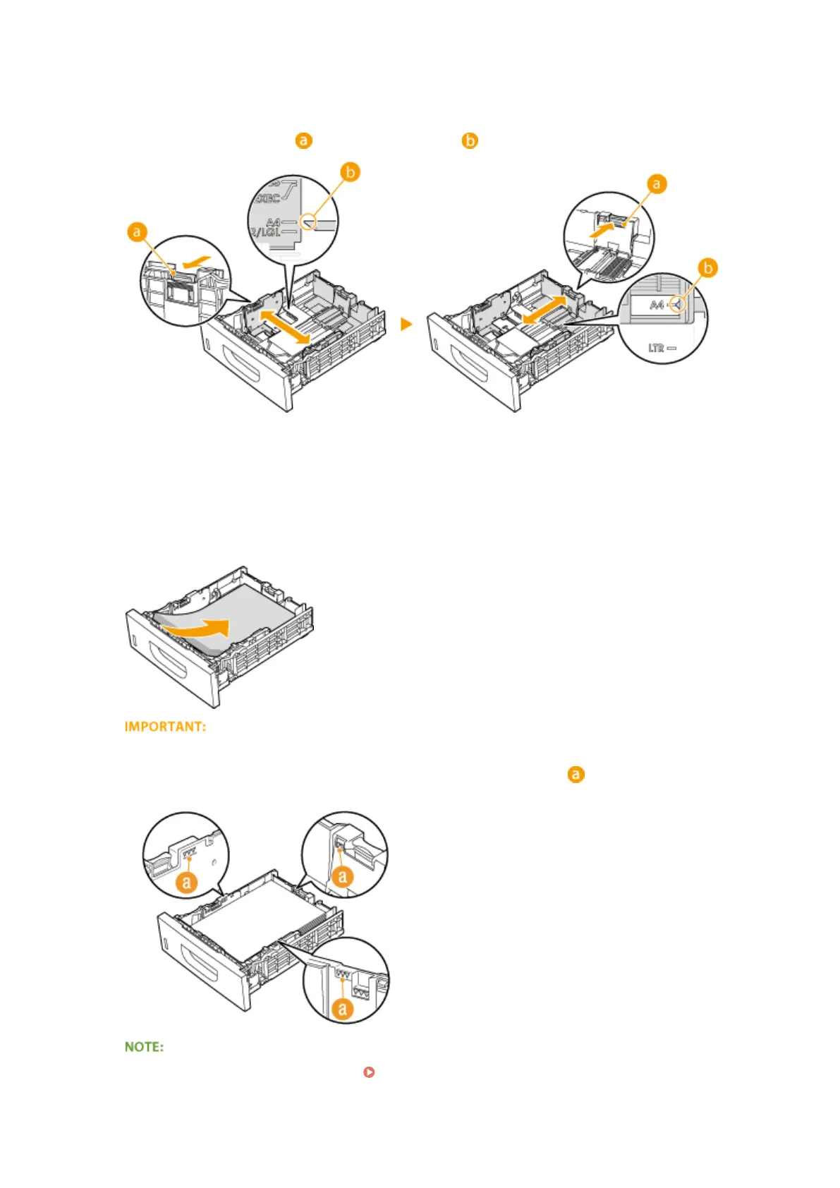 ● Make sure that the paper stack does not exceed the load limit line ( ). Loading too much paper can