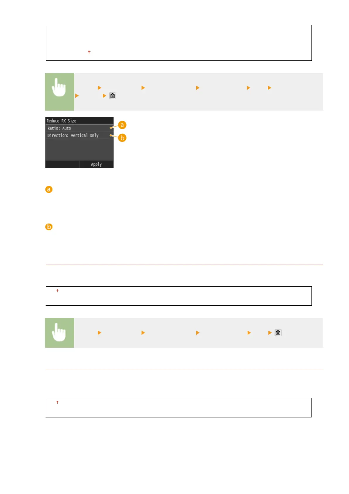 <Menu> <Fax Settings> <RX Print Settings> <Reduce RX Size> <On> Specify the settings