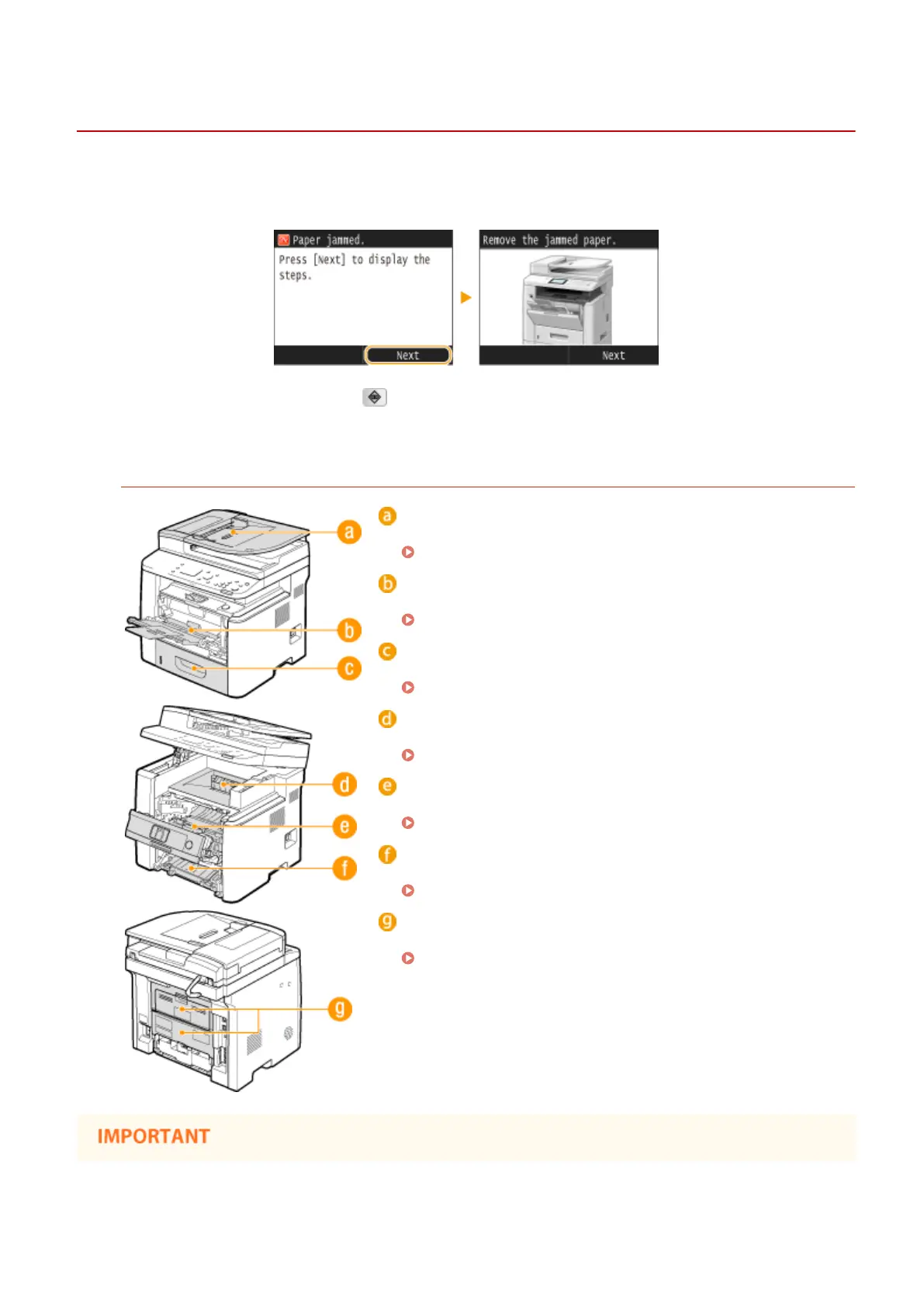 If a paper jams, <Paper jammed.> is displayed on the screen. Tap <Next> to display simple solutions
